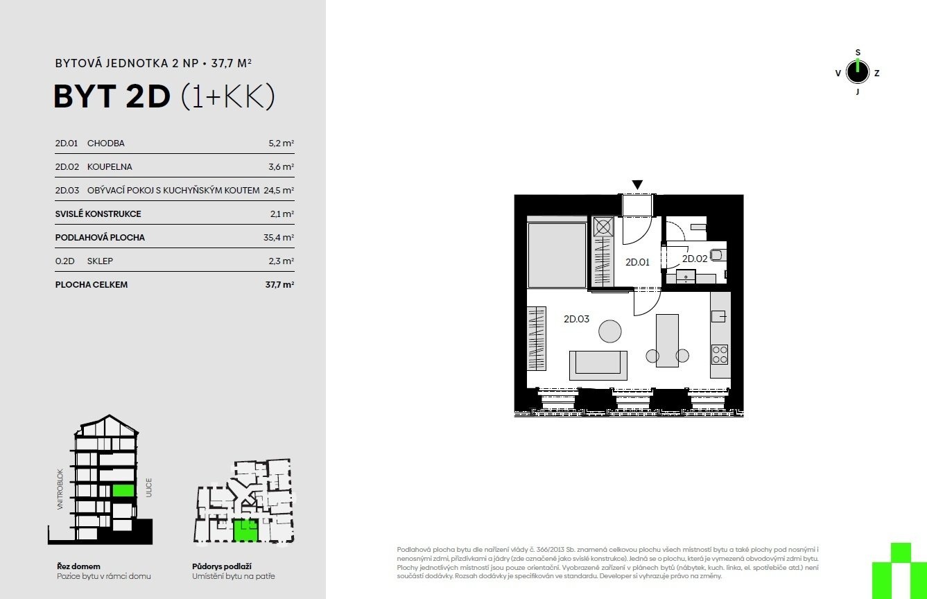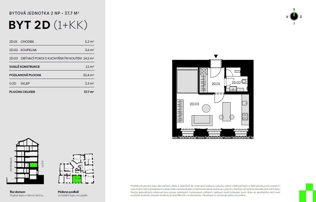 | VN67-4 | 2+kk | 2. podzemní podlaží | 73 m2 | Ne / Ne / Ne | Ano (25 m2) | 11 980 000 Kč | Detail |