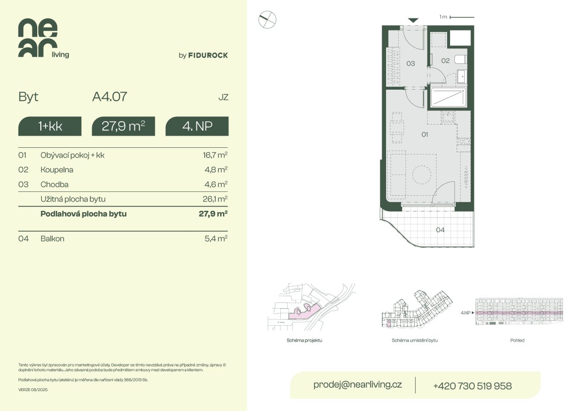 Nabízíme k prodeji byt 1+kk o podlahové ploše 27,9 m² s balkonem 5,4 m² v developerském projektu NEAR living v Praze 8, vznikajícím na pomezí Palmovky a Karlína.