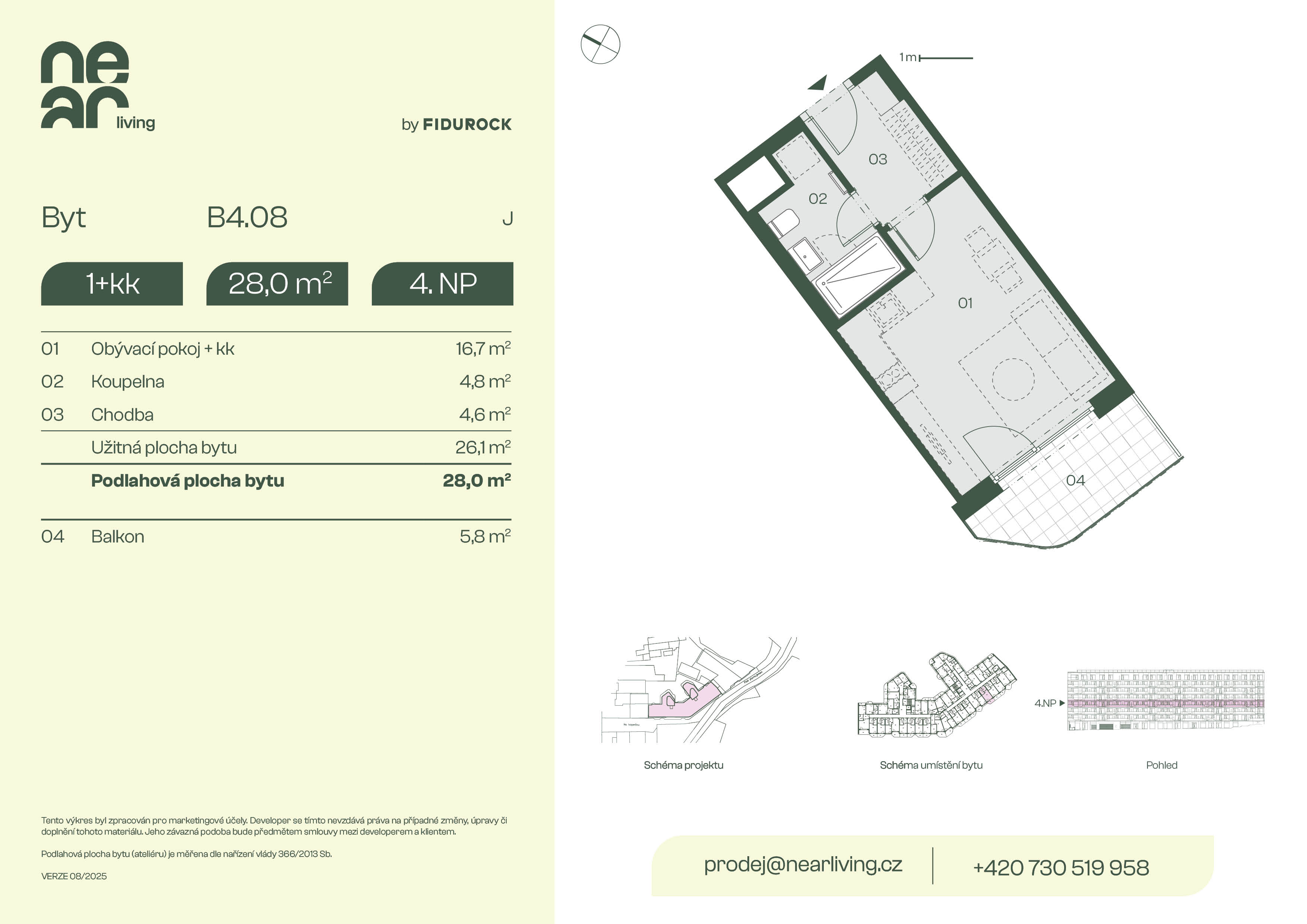 Nabízíme k prodeji byt 1+kk o podlahové ploše 28 m² s balkonem 5,8 m² v developerském projektu NEAR living v Praze 8, vznikajícím na pomezí Palmovky a Karlína.
