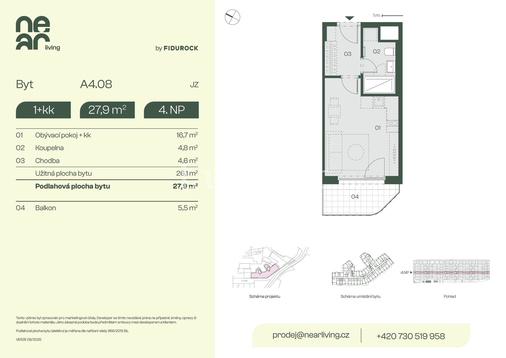 NL-B304 | 1+kk | 2. patro | 26 m2 | 28 m2 | Ne / 5 m2 / Ne | Ne | Rezervováno | Detail |