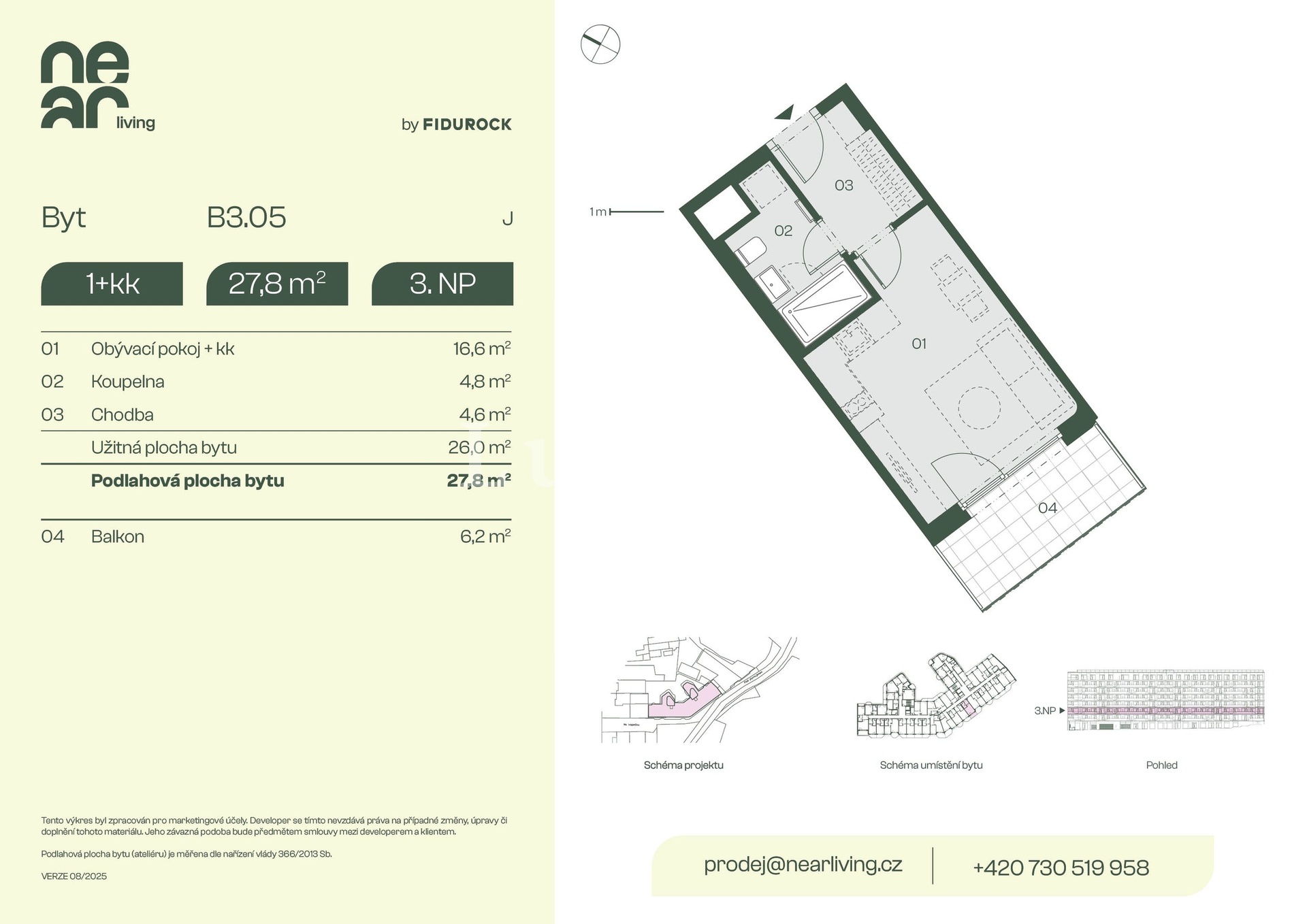 NL-B308 | 1+kk | 2. patro | 26 m2 | 28 m2 | Ne / 5 m2 / Ne | Ne | Rezervováno | Detail |