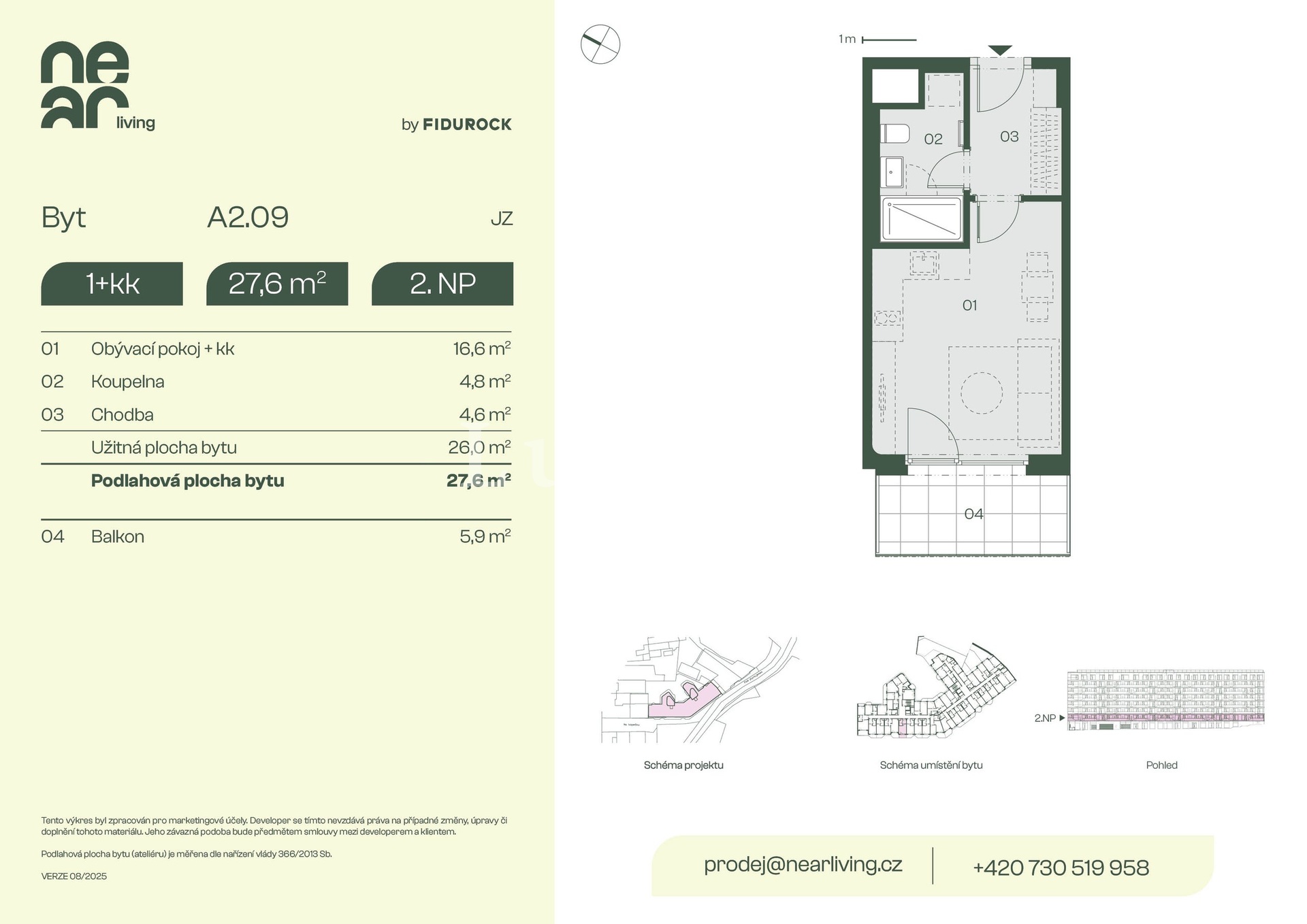 | NL-A211 | 1+kk | 1. patro | 26 m2 | 28 m2 | Ne / 5 m2 / Ne | Ne | Rezervováno | Detail |