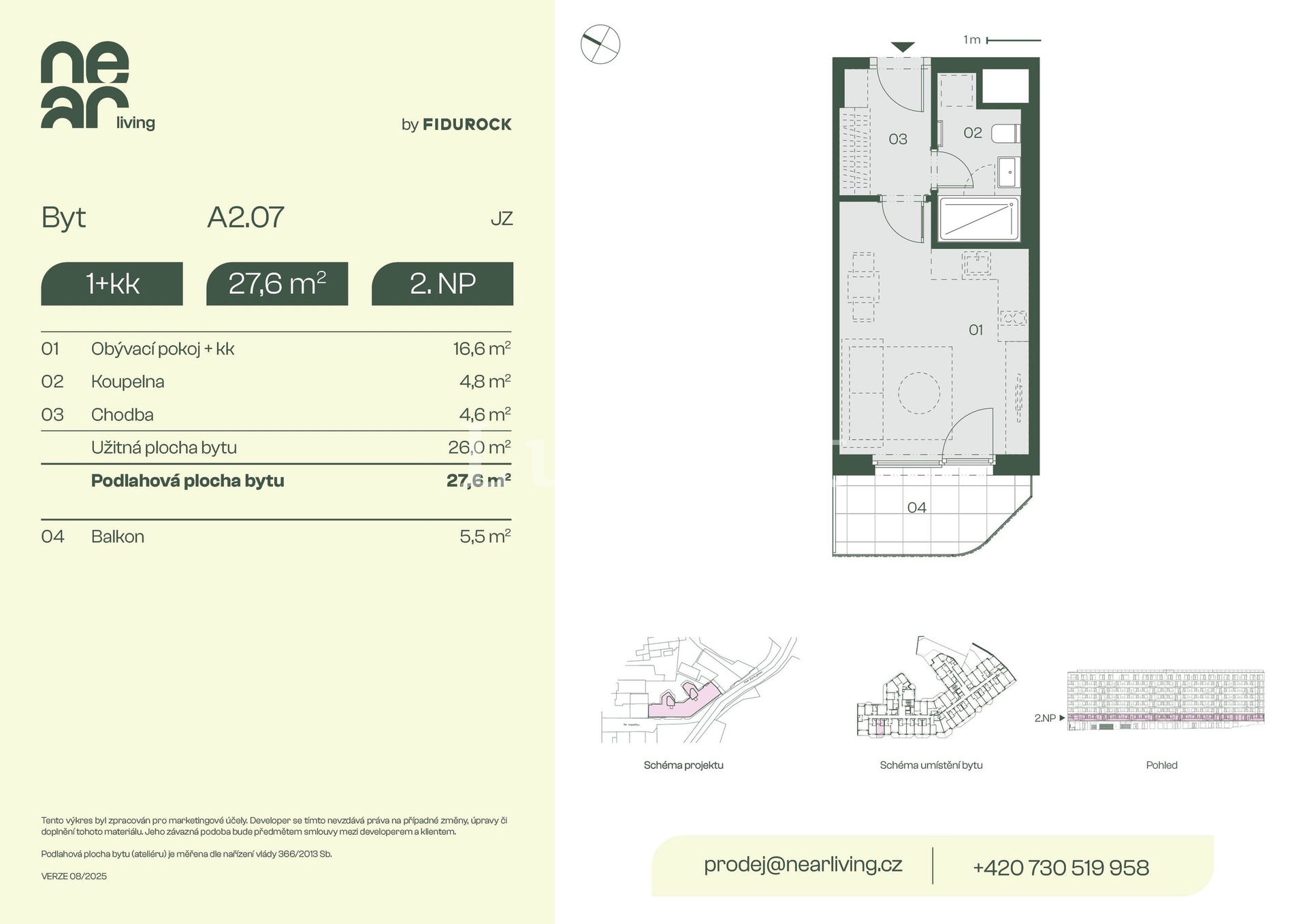 | NL-A304 | 1+kk | 2. patro | 26 m2 | 28 m2 | Ne / 3 m2 / Ne | Ne | Rezervováno | Detail |