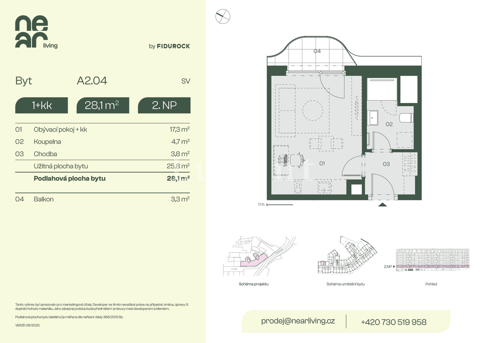 Nabízíme k prodeji byt 1+kk o podlahové ploše 28,1 m² s balkonem 3,3 m² v developerském projektu NEAR living v Praze 8, vznikajícím na pomezí Palmovky a Karlína.