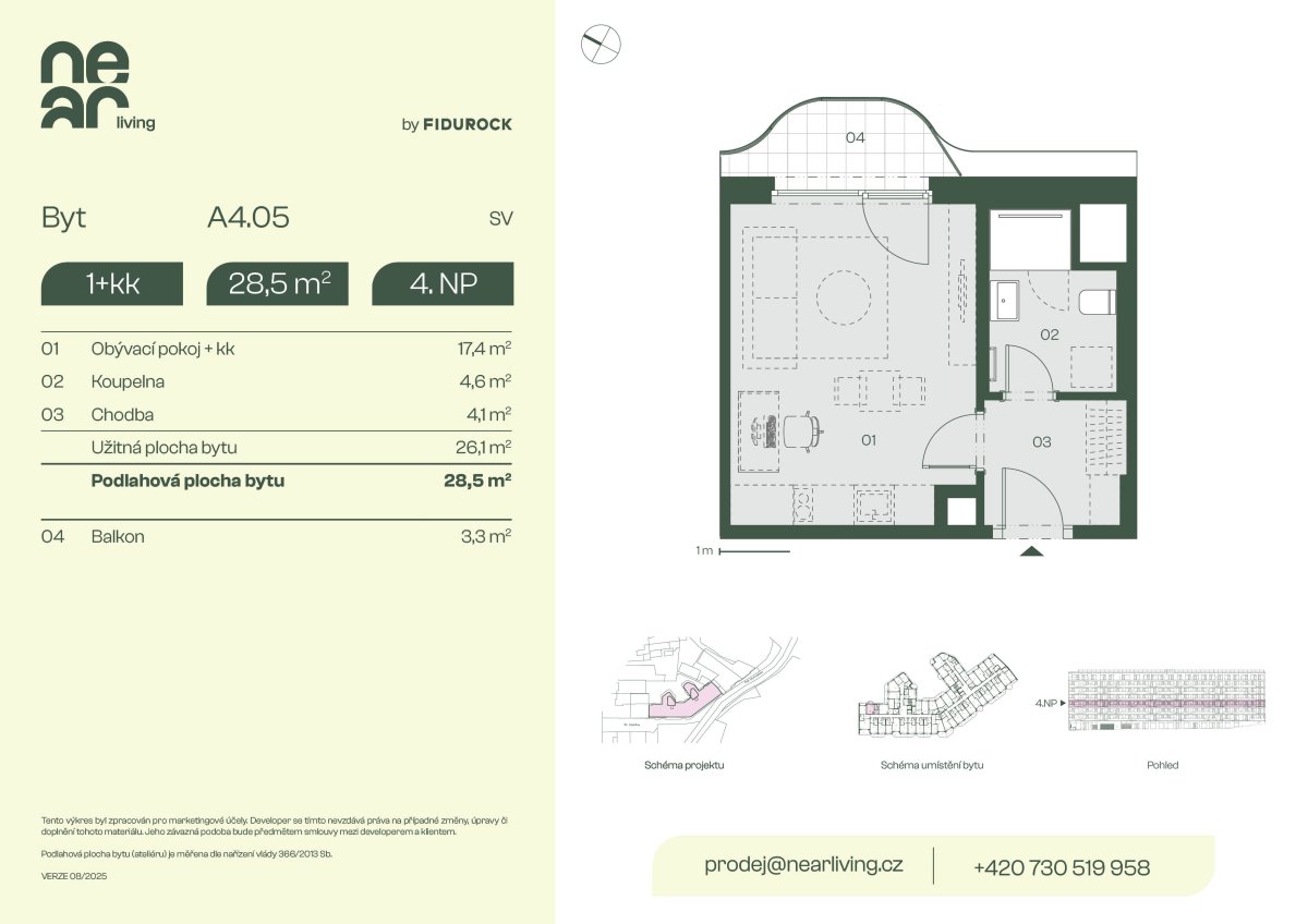 Nabízíme k prodeji byt 1+kk o podlahové ploše 28,5 m² s balkonem 3,3 m² v developerském projektu NEAR living v Praze 8, vznikajícím na pomezí Palmovky a Karlína.