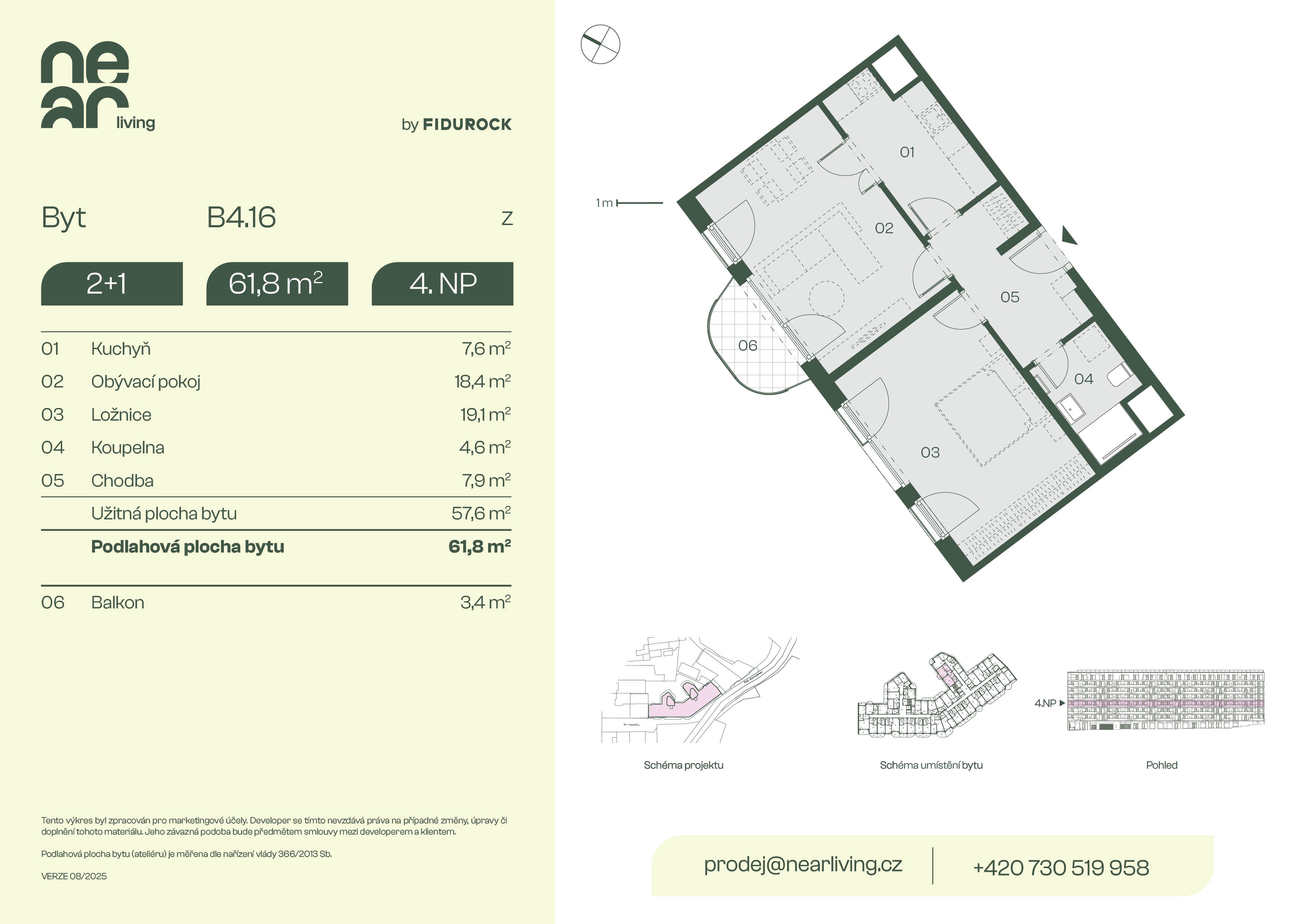 Nabízíme k prodeji byt 2+1 o podlahové ploše 61,8 m² s balkonem 3,4 m² v developerském projektu NEAR living v Praze 8, vznikajícím na pomezí Palmovky a Karlína.