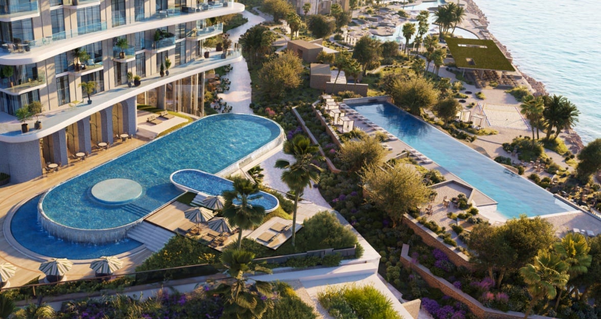 Tato jedinečná stavba s odvážným designem a charakteristickým 45° náklonem se stala ikonou na dubajském pobřeží. Organicky se vinoucí terasy splývají s okolní krajinou, vysunuté balkony a kaskádovité terasy rámují dechberoucí výhledy. Průhledné skleněné zábradlí stírá hranice mezi interiérem a panoramatem zálivu. Design je doplněn o sofistikované retro prvky, které dodávají celku nezaměnitelný charakter.