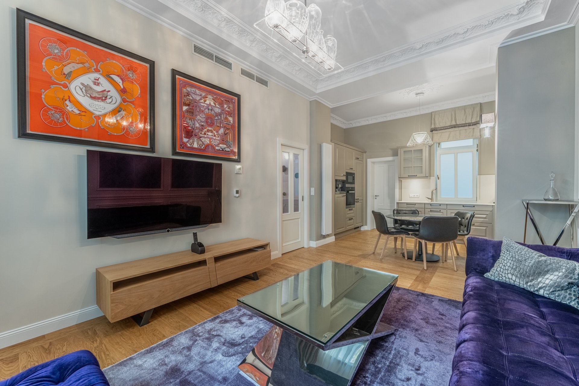 Nabízíme luxusně vybavený designový apartmán „Amethyst“ v nově zrekonstruovaném historickém domě Rubin Palace, v srdci Karlových Varů, ve Vřídelní ulici na lázeňské kolonádě. Jedná se o byt ve 3. patře tohoto atraktivního rezidenčního domu s výtahem. Dispozice 2+kk je rozložena na podlahové ploše 61,7 m2.