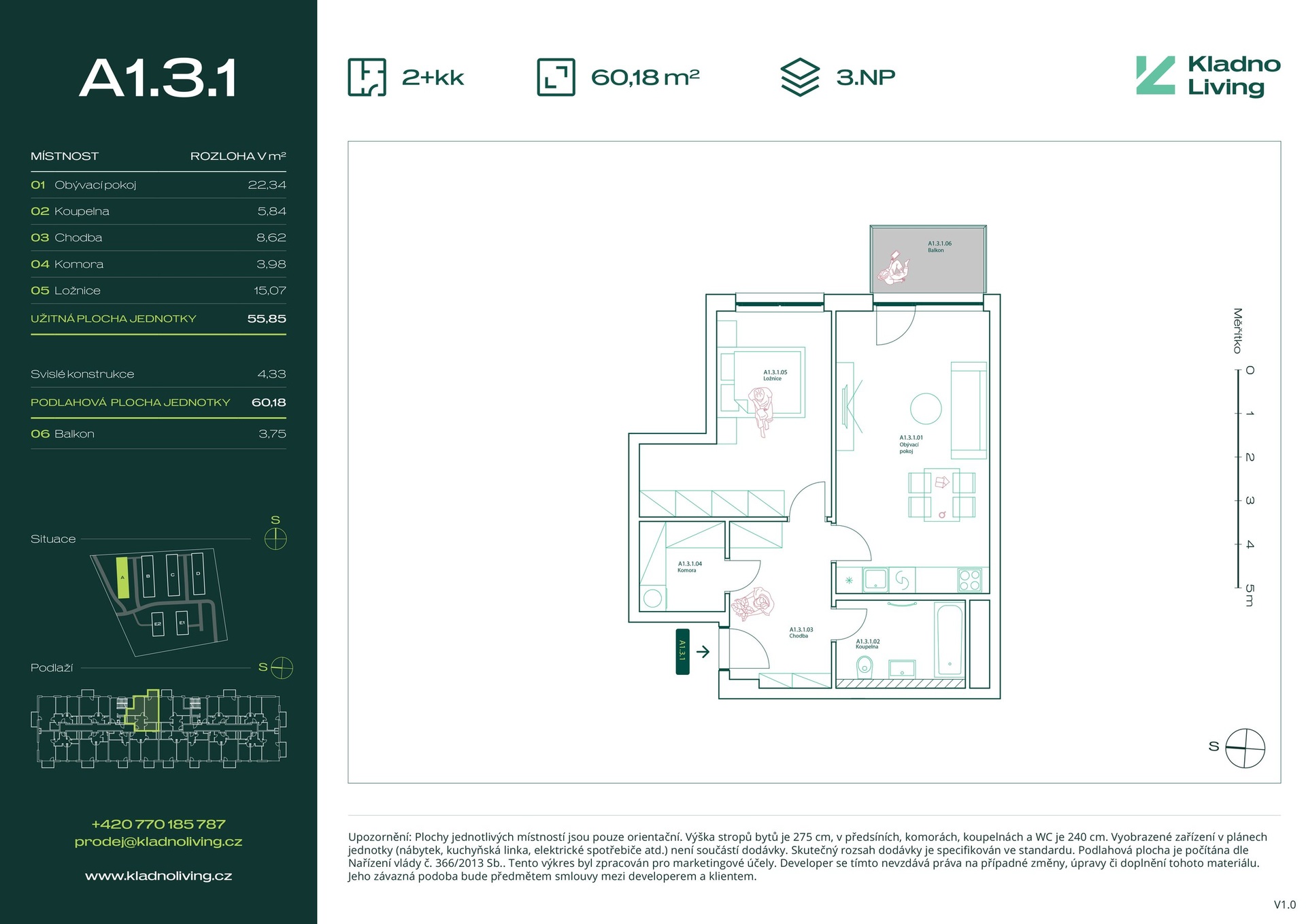 Nabízíme ke koupi moderní byt 2+kk o podlahové ploše 60,2 m² s balkonem 3,8 m² v rezidenčním projektu Kladno Living, který vzniká v jedné z nejatraktivnějších lokalit města Kladno – Kročehlavy. Tento nový developerský projekt představuje jedinečnou příležitost pro ty, kteří hledají nové byty v Kladně nebo investici do nemovitosti s vysokým potenciálem zhodnocení.