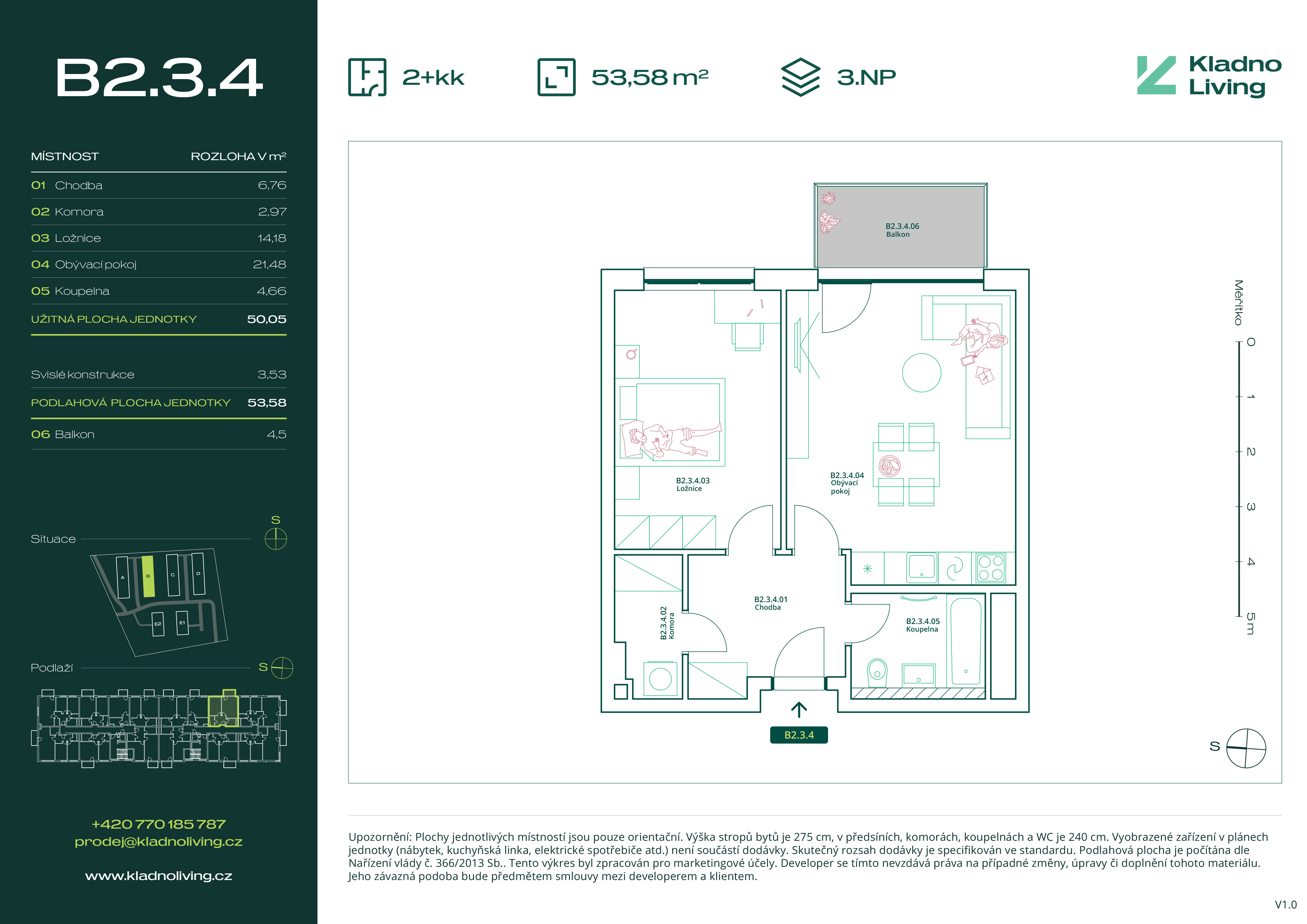 Nabízíme ke koupi moderní byt 2+kk o podlahové ploše 53,6 m² s balkonem 4,5 m² v rezidenčním projektu Kladno Living, který vzniká v jedné z nejatraktivnějších lokalit města Kladno – Kročehlavy. Tento nový developerský projekt představuje jedinečnou příležitost pro ty, kteří hledají nové byty v Kladně nebo investici do nemovitosti s vysokým potenciálem zhodnocení.