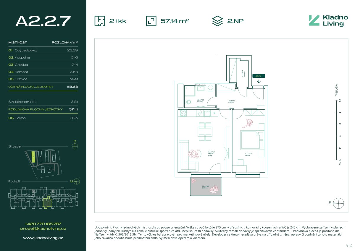 Nabízíme ke koupi moderní byt 2+kk o podlahové ploše 57,1 m² s balkonem 3,8 m² v rezidenčním projektu Kladno Living, který vzniká v jedné z nejatraktivnějších lokalit města Kladno – Kročehlavy. Tento nový developerský projekt představuje jedinečnou příležitost pro ty, kteří hledají nové byty v Kladně nebo investici do nemovitosti s vysokým potenciálem zhodnocení.