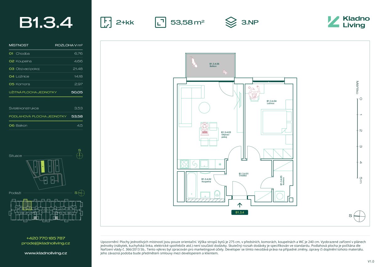 Nabízíme ke koupi moderní byt 2+kk o podlahové ploše 53,6 m² s balkonem 4,5 m² v rezidenčním projektu Kladno Living, který vzniká v jedné z nejatraktivnějších lokalit města Kladno – Kročehlavy. Tento nový developerský projekt představuje jedinečnou příležitost pro ty, kteří hledají nové byty v Kladně nebo investici do nemovitosti s vysokým potenciálem zhodnocení.