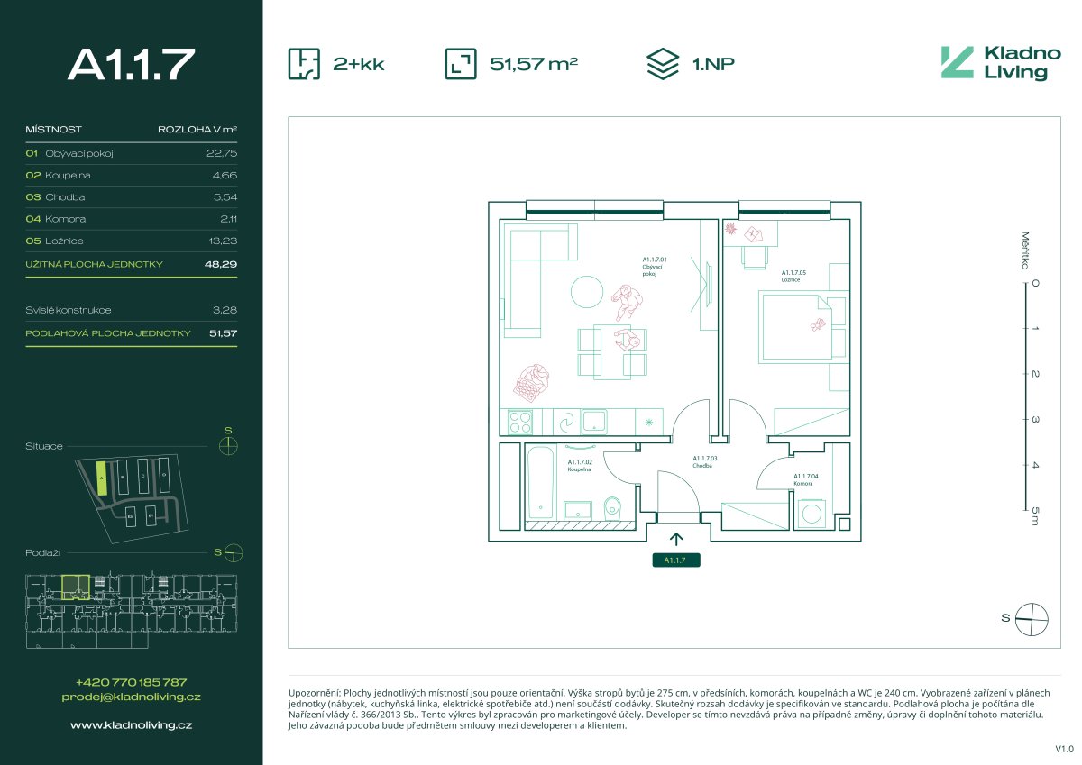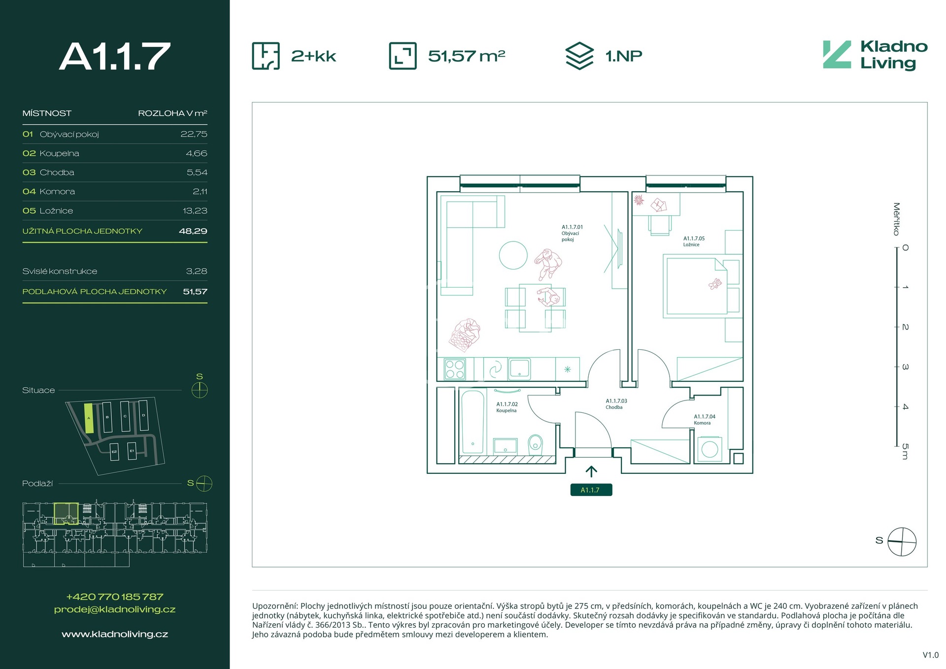Nabízíme ke koupi moderní byt 2+kk o podlahové ploše 51,6 m² v rezidenčním projektu Kladno Living, který vzniká v jedné z nejatraktivnějších lokalit města Kladno – Kročehlavy. Tento nový developerský projekt představuje jedinečnou příležitost pro ty, kteří hledají nové byty v Kladně nebo investici do nemovitosti s vysokým potenciálem zhodnocení.