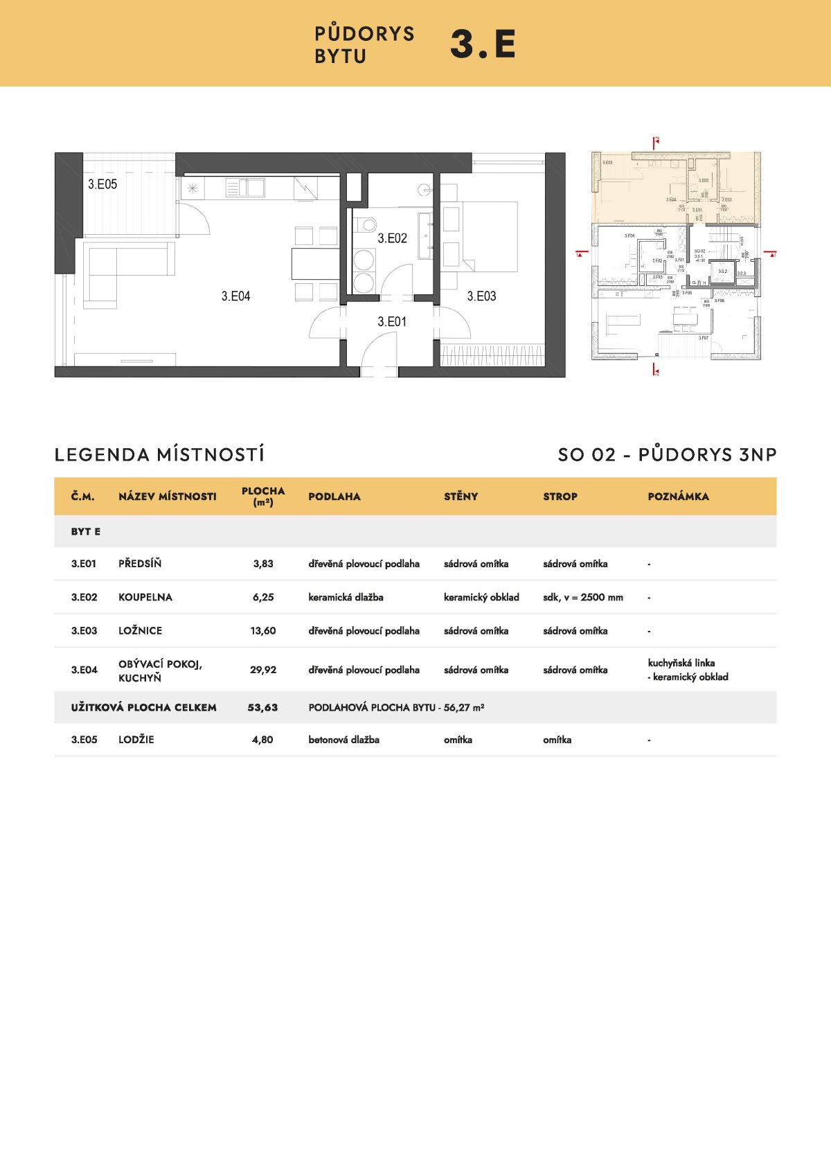 | NB-B3E | 2+kk | 2. patro | 53 m2 | 57 m2 | Ne / Ne / 5 m2 | Ne | 7 073 000 Kč | Detail |