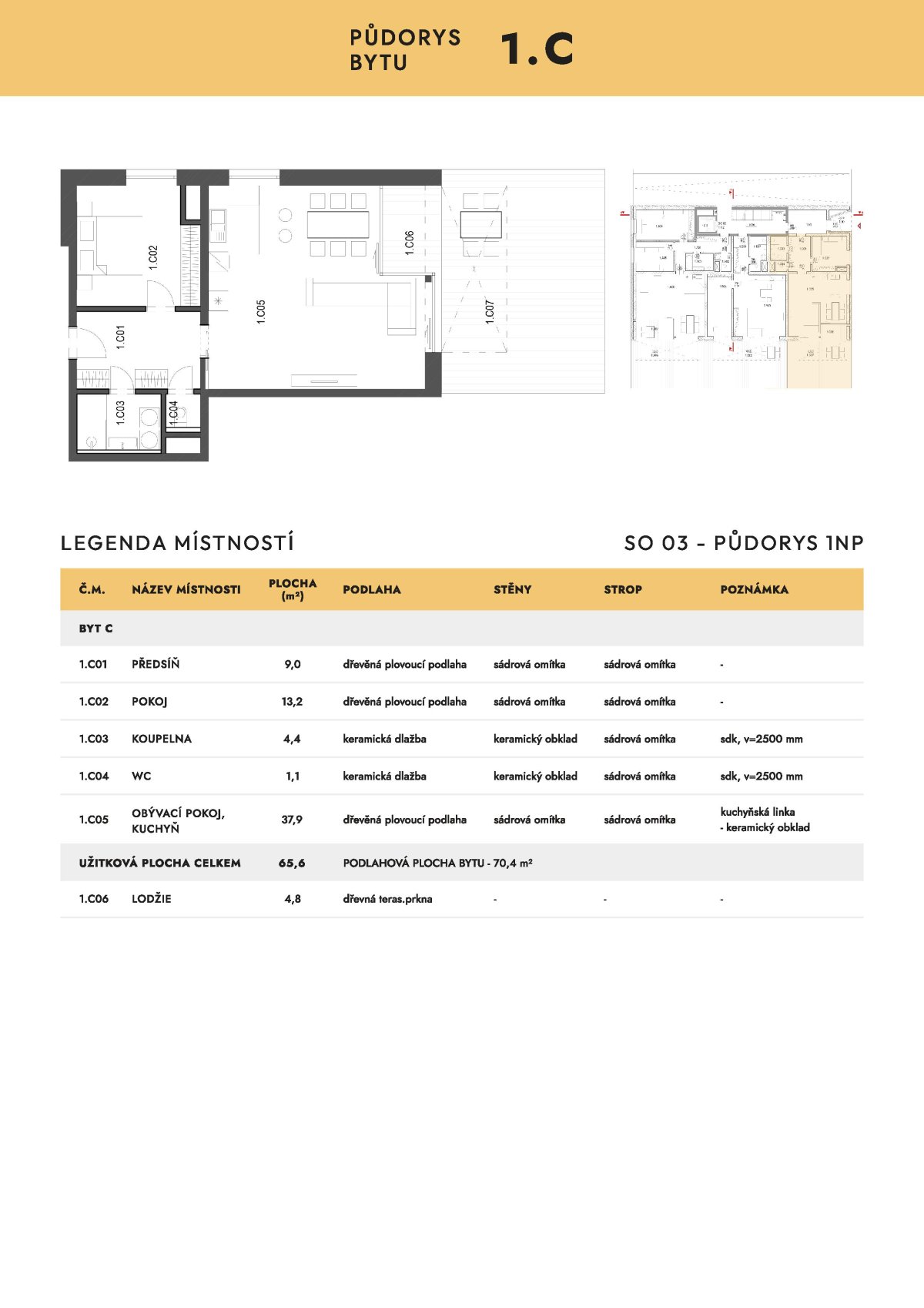 | NB-A1C | 2+kk | přízemí | 66 m2 | 70 m2 | 34 m2 / Ne / 5 m2 | Ne | 9 210 000 Kč | Detail |