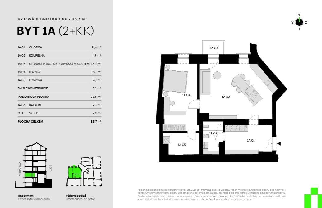 | VN67-4 | 2+kk | 2. podzemní podlaží | 73 m2 | Ne / Ne / Ne | Ano (25 m2) | 11 980 000 Kč | Detail |