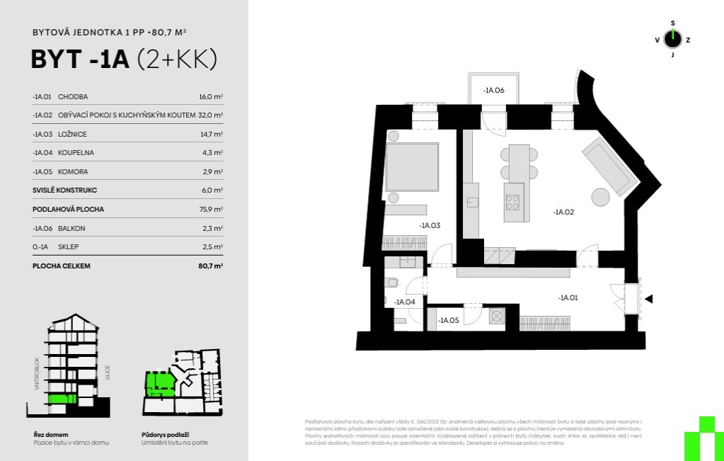 | VN67-4 | 2+kk | 2. podzemní podlaží | 73 m2 | Ne / Ne / Ne | Ano (25 m2) | 11 980 000 Kč | Detail |