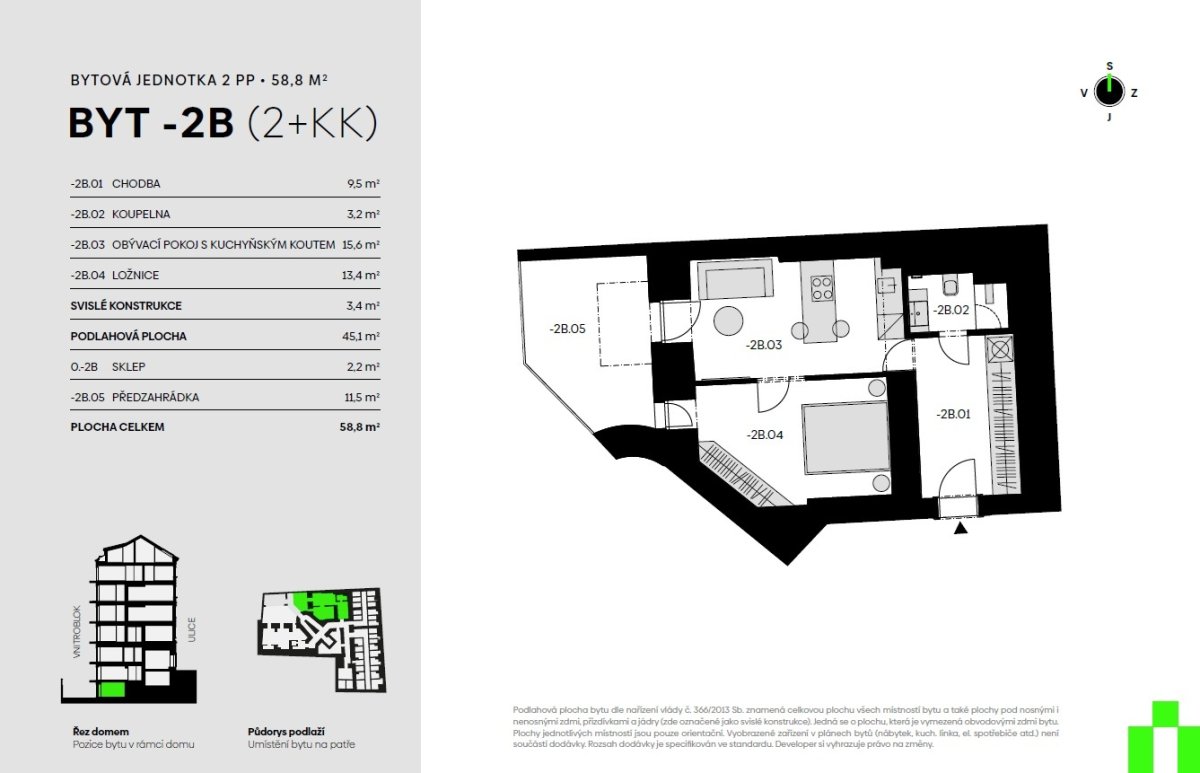 VN67-02B 2+kk 2. podzemní podlaží 59 m2 Ne / Ne / Ne Ano (12 m2) 11 895 000 Kč Detail