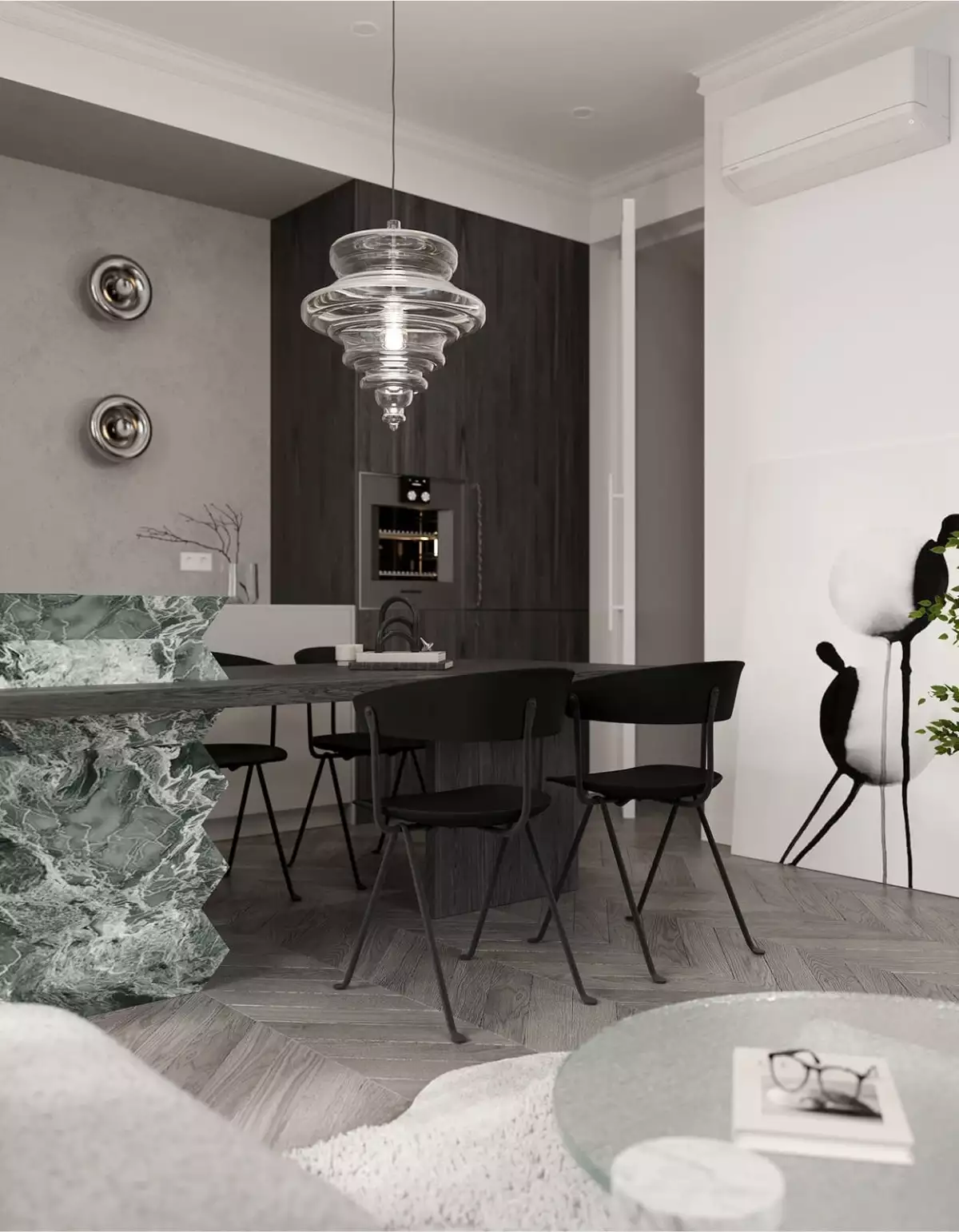 Plocha jednotky celkem činí 58,8 m², byt je navržen ve vysokém standardu. Obytný prostor doplňuje dřevěná podlaha FREVINI MONACO, pokládaná ve vzoru chevron. Interiérové dveře kombinují klasické dřevěné prvky s ocelovými skleněnými dveřmi se strukturovaným a čirým sklem, čímž podtrhují moderní charakter prostoru. K bytu náleží sklep.