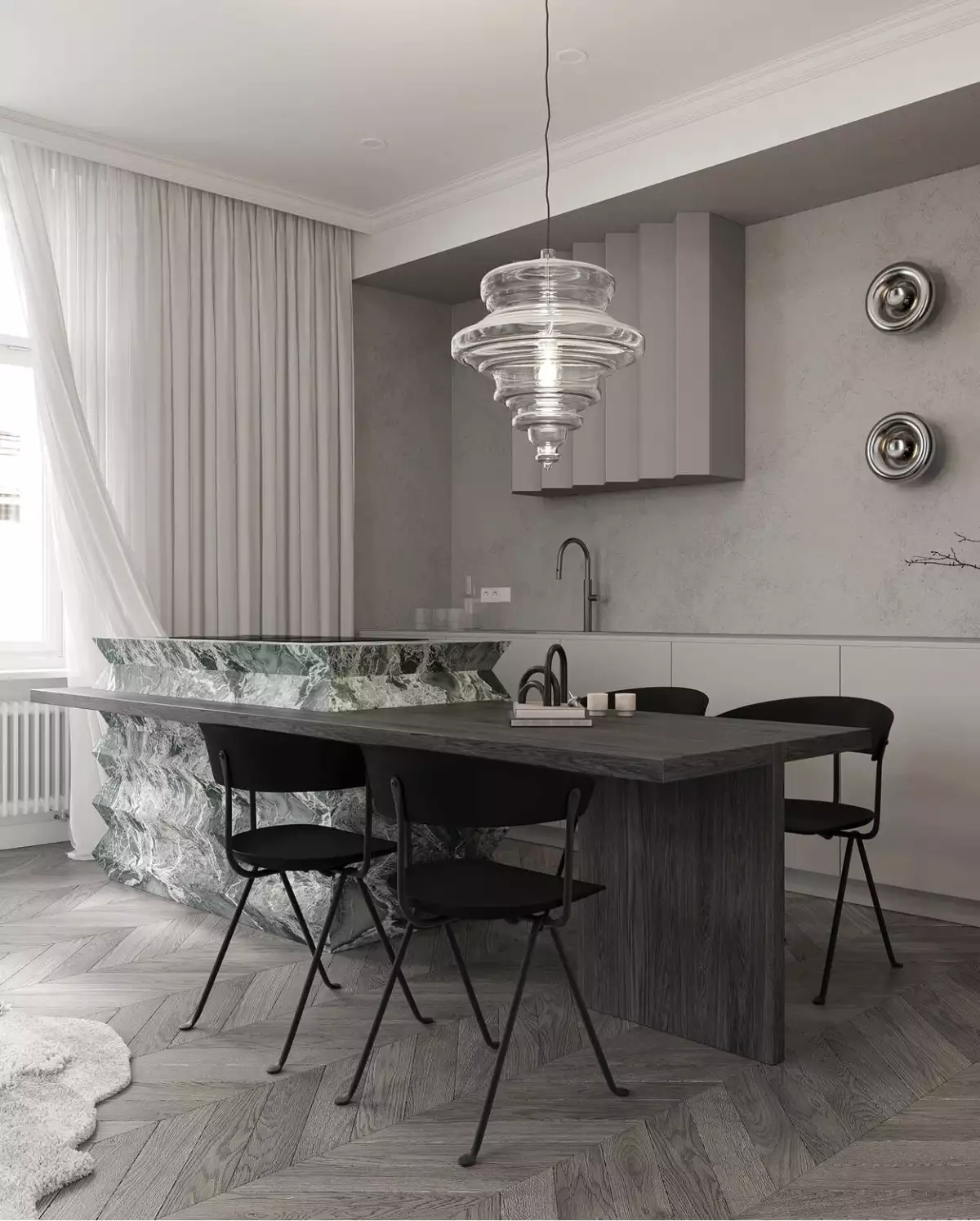 Plocha jednotky celkem činí 72,8 m², byt je navržen ve vysokém standardu. Obytný prostor doplňuje dřevěná podlaha FREVINI MONACO, pokládaná ve vzoru chevron. Interiérové dveře kombinují klasické dřevěné prvky s ocelovými skleněnými dveřmi se strukturovaným a čirým sklem, čímž podtrhují moderní charakter prostoru. K bytu náleží sklep.