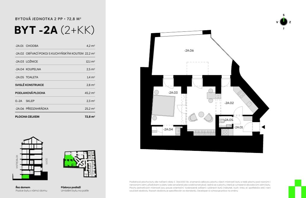 | VN67-4 | 2+kk | 2. podzemní podlaží | 73 m2 | Ne / Ne / Ne | Ano (25 m2) | 11 980 000 Kč | Detail |