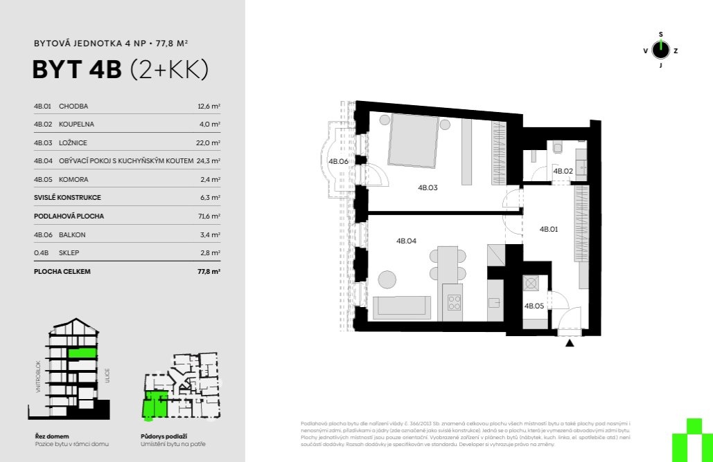 | VN67-4 | 2+kk | 2. podzemní podlaží | 73 m2 | Ne / Ne / Ne | Ano (25 m2) | 11 980 000 Kč | Detail |