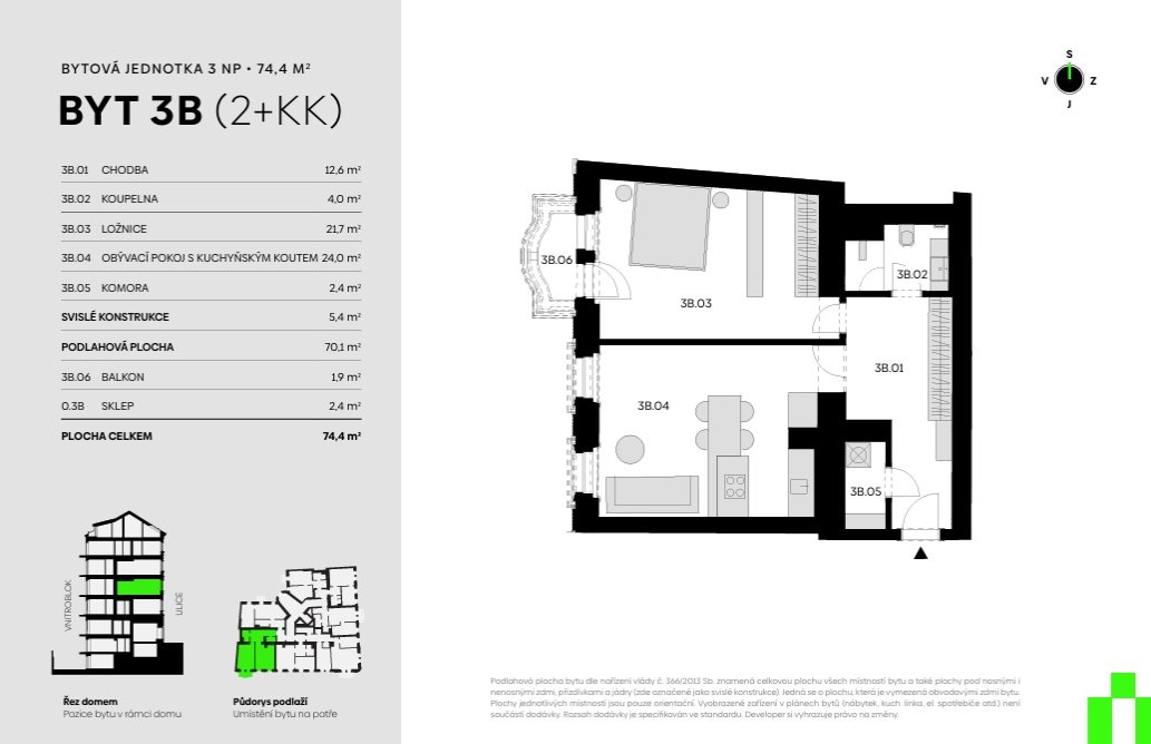 | VN67-4 | 2+kk | 2. podzemní podlaží | 73 m2 | Ne / Ne / Ne | Ano (25 m2) | 11 980 000 Kč | Detail |