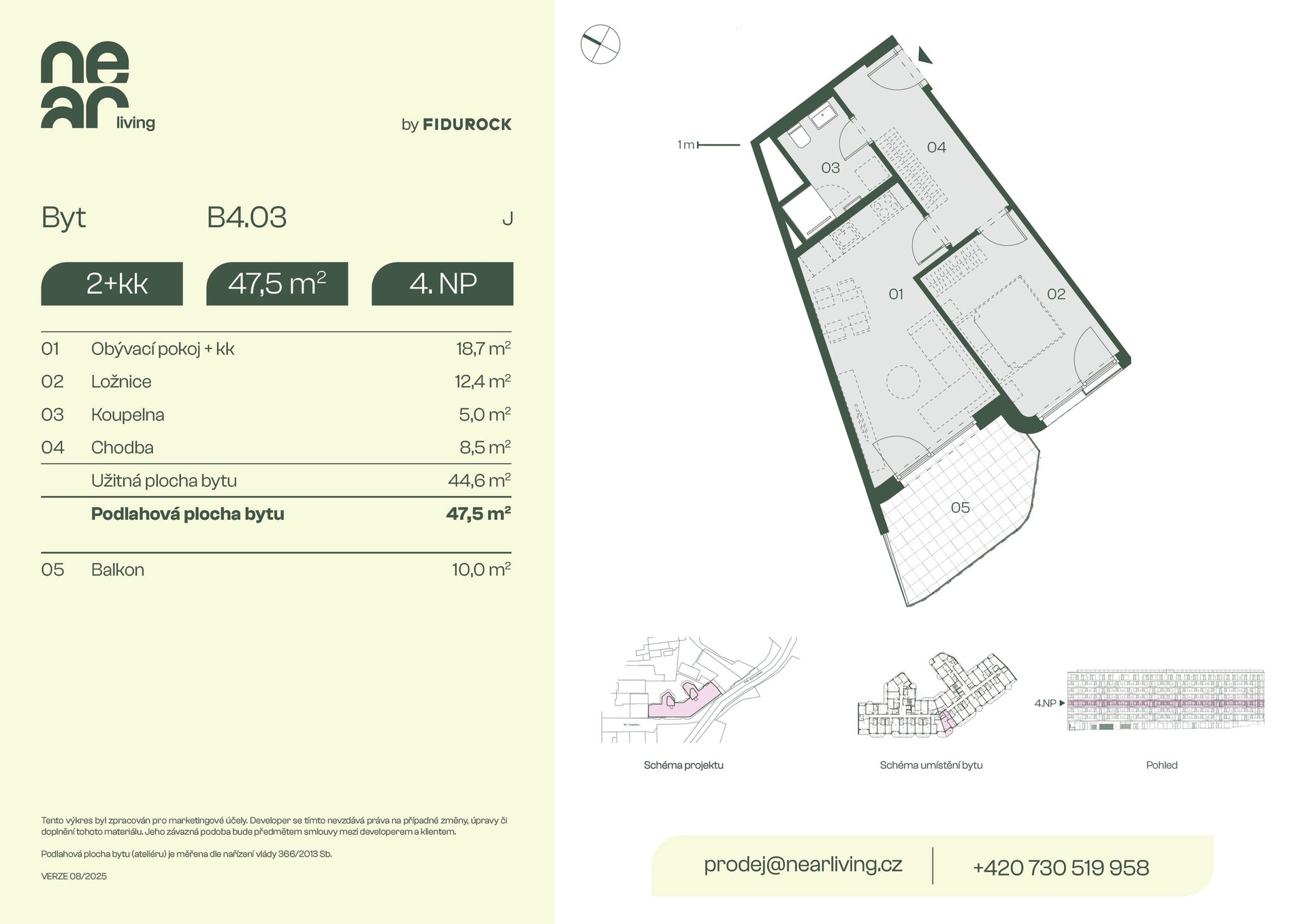 | NL-B402 | 1+kk | 3. patro | 25 m2 | 27 m2 | Ne / 4 m2 / Ne | Ne | Prodáno | Detail |