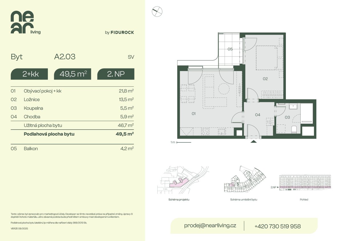 | NL-B213 | 2+kk | 1. patro | 46 m2 | 49 m2 | 5 m2 / Ne / Ne | Ano (13 m2) | 10 420 000 Kč | Detail |