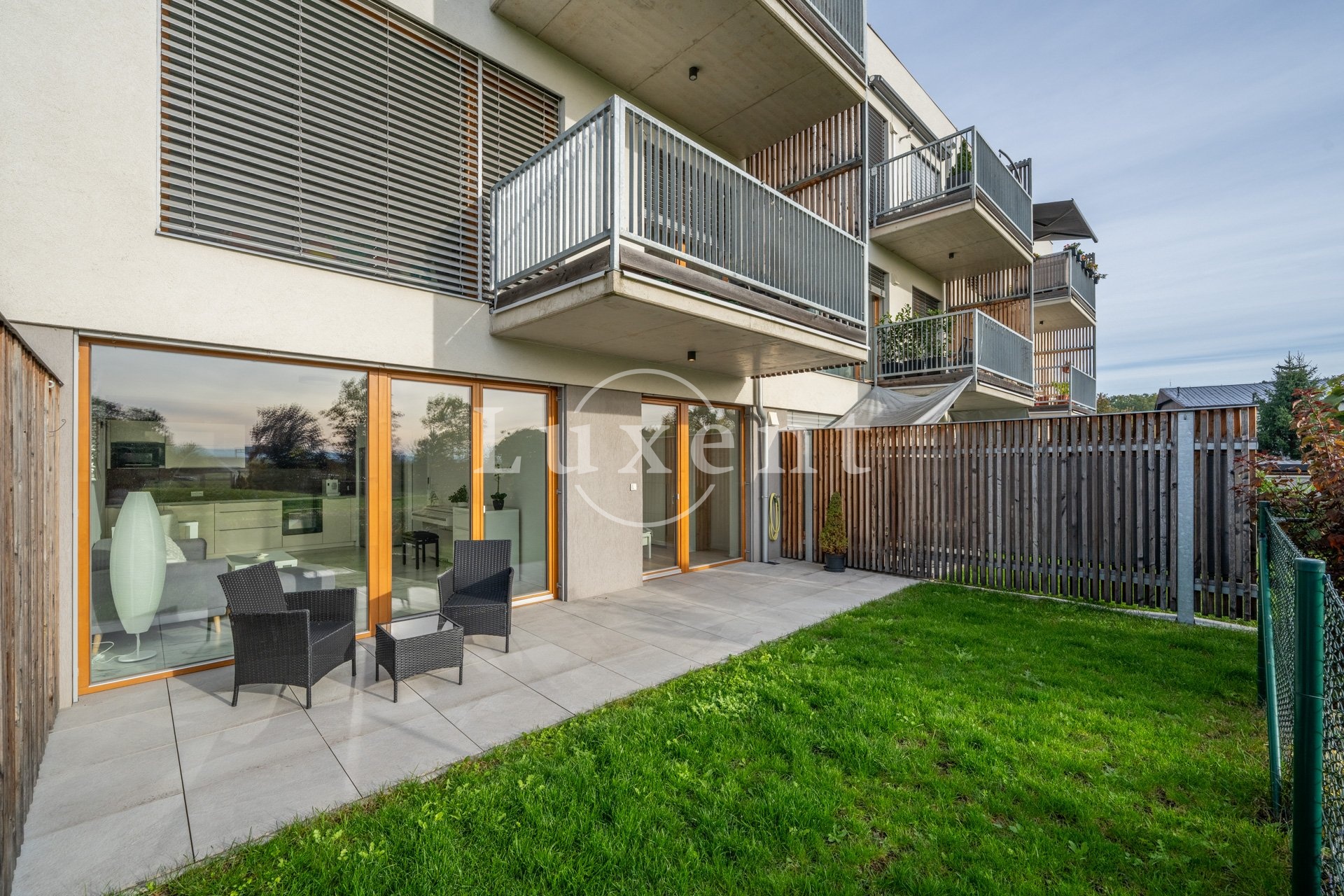 Byt je situován v 1.NP, interiér zahrnuje předsíň, velkorysý vzdušný obývací pokoj s kuchyní, ložnici, prostornou koupelnu s vanou, toaletou a komoru, kde je prostor pro pračku. Oba pokoje mají přímý vstup na předzahrádku, pro příjemné posezení, ale také propojení s přírodou a výhledy do atmosferické zahrady se vzrostlou zelení a jezírkem.