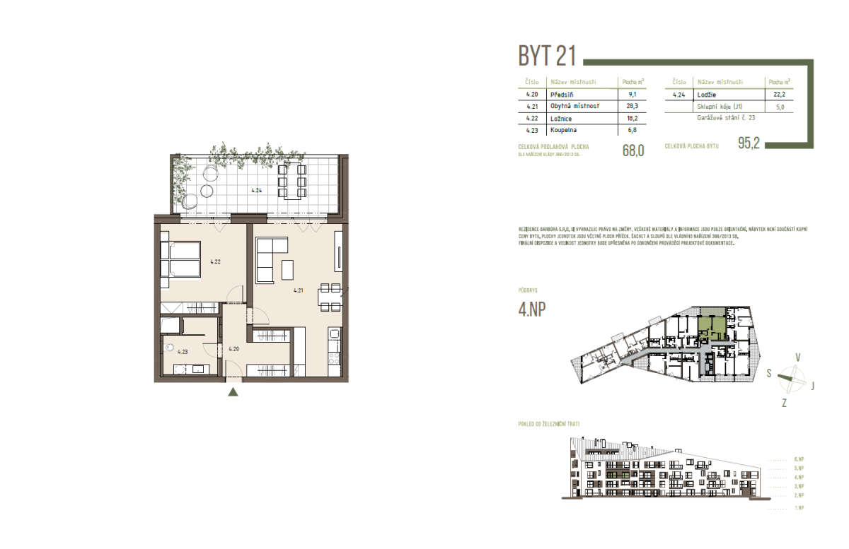 | SB-21 | 2+kk | 3. patro | 62 m2 | 68 m2 | Ne / Ne / 22 m2 | Ne | 9 784 000 Kč | Detail |
