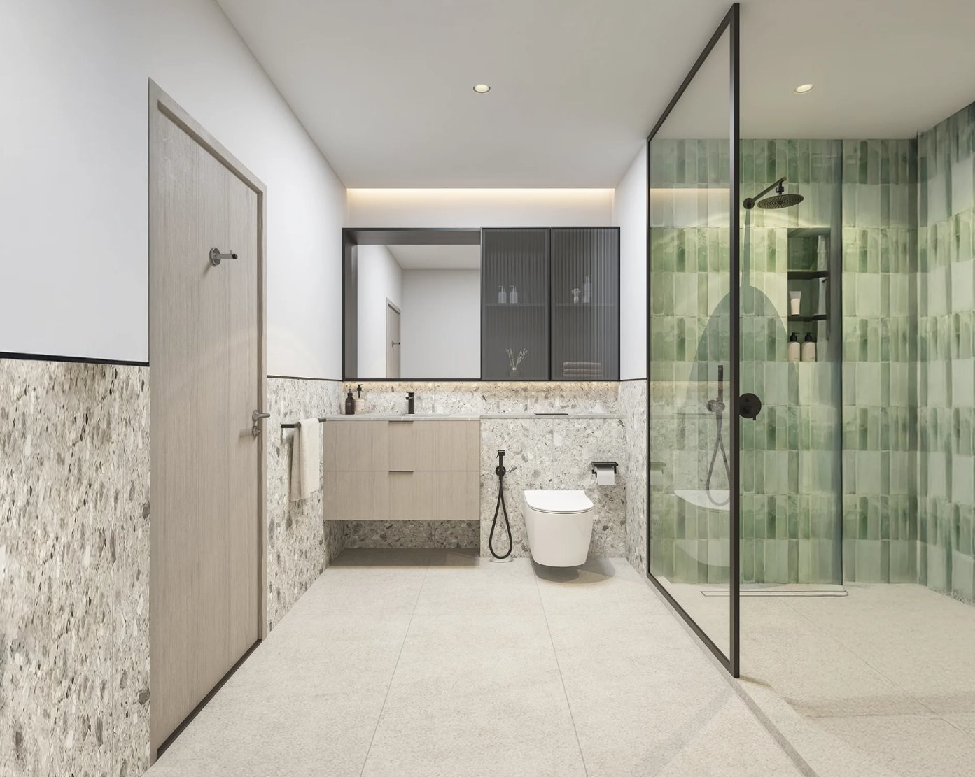 Samotný apartmán je navržen jako funkční a zároveň stylové městské útočiště. Dispozice 2+kk nabízí otevřený obytný prostor s kuchyňským koutem a jídelní částí, který plynule navazuje na soukromý balkon. Interiér působí svěže a nadčasově, s důrazem na kvalitní materiály, promyšlené detaily a maximální využití prostoru. Ložnice poskytuje dostatek soukromí i komfortu pro každodenní odpočinek. Součástí jednotky je také privátní bazén, který vytváří jedinečný pocit resortního bydlení přímo u vás doma.