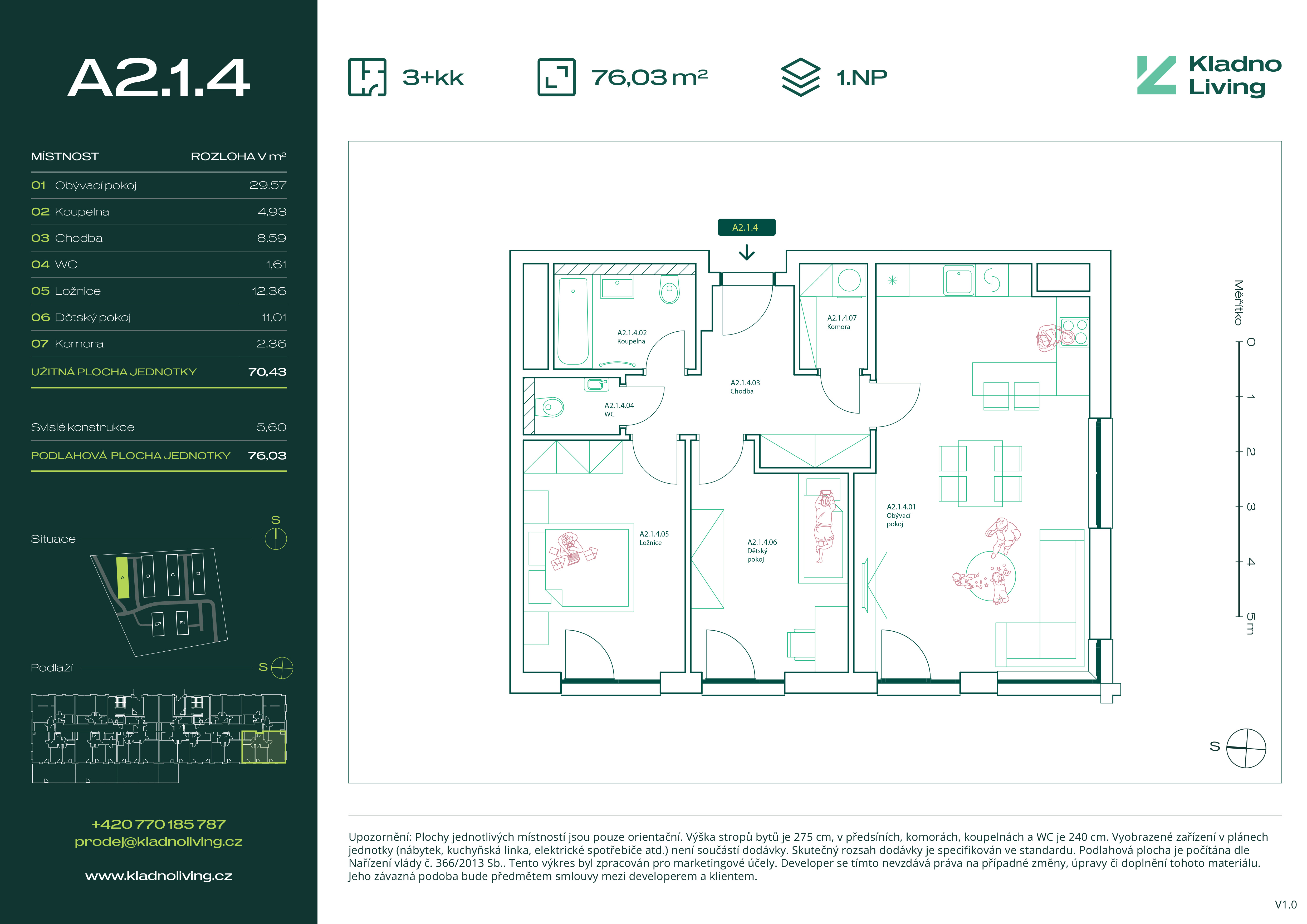 | KL-A214 | 3+kk | přízemí | 70 m2 | 76 m2 | Ne / Ne / Ne | Ne | 7 390 000 Kč | Detail |