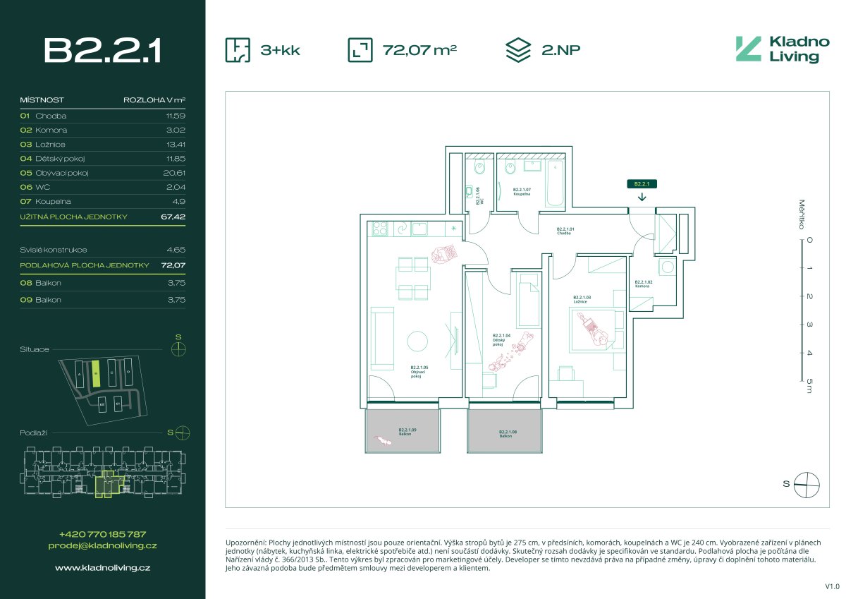| KL-B221 | 3+kk | 1. patro | 67 m2 | 72 m2 | Ne / 8 m2 / Ne | Ne | 7 600 000 Kč | Detail |