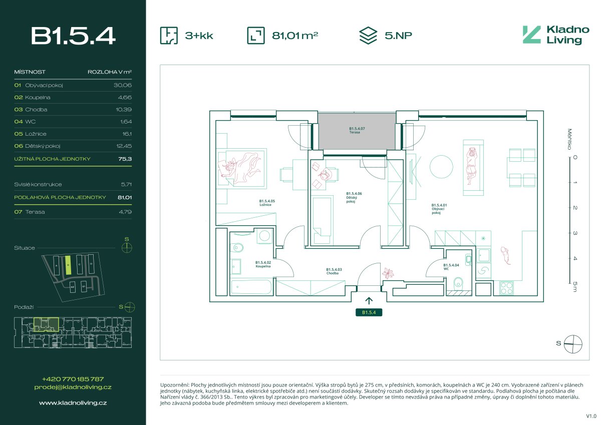 Nabízíme ke koupi moderní byt 3+kk o podlahové ploše 81 m² s terasou 4,8 m² v rezidenčním projektu Kladno Living, který vzniká v jedné z nejatraktivnějších lokalit města Kladno – Kročehlavy. Tento nový developerský projekt představuje jedinečnou příležitost pro ty, kteří hledají nové byty v Kladně nebo investici do nemovitosti s vysokým potenciálem zhodnocení.