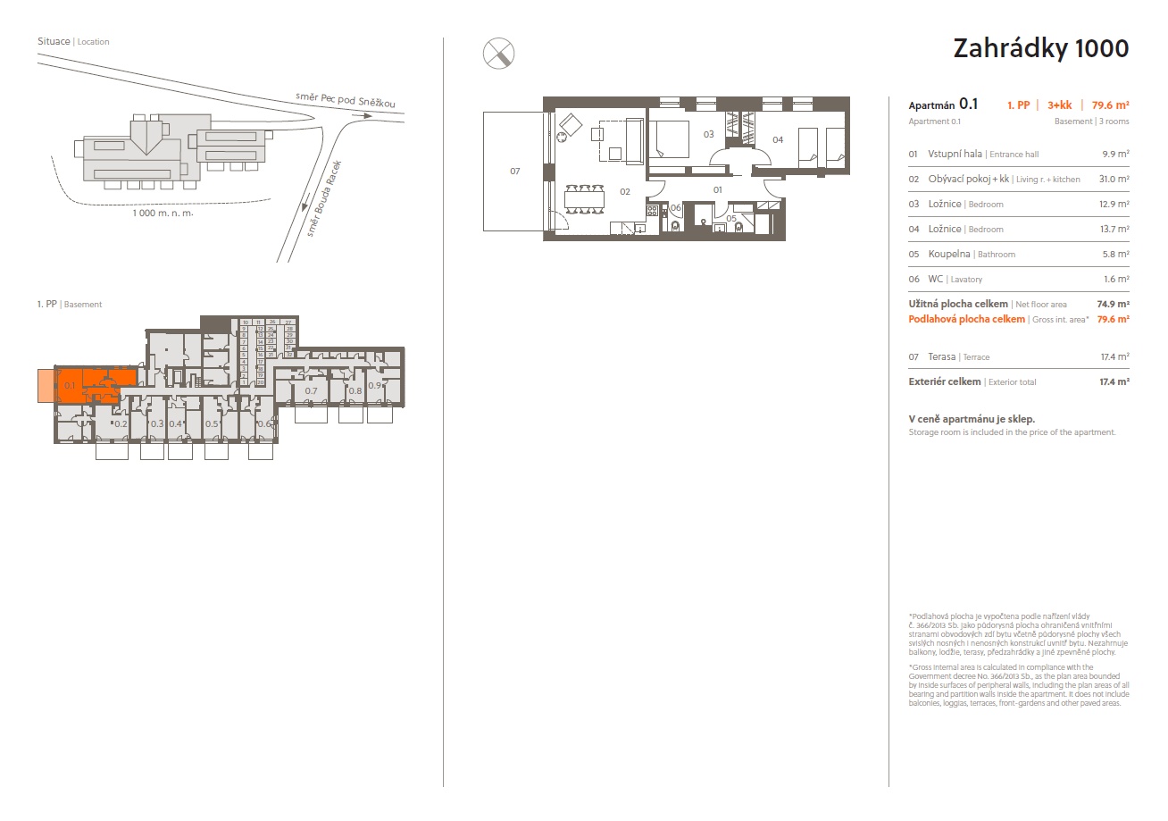 | Z0-1 | 3+kk | 1. podzemní podlaží | 75 m2 | 80 m2 | 17 m2 / Ne / Ne | Ne | na vyžádání | Detail |