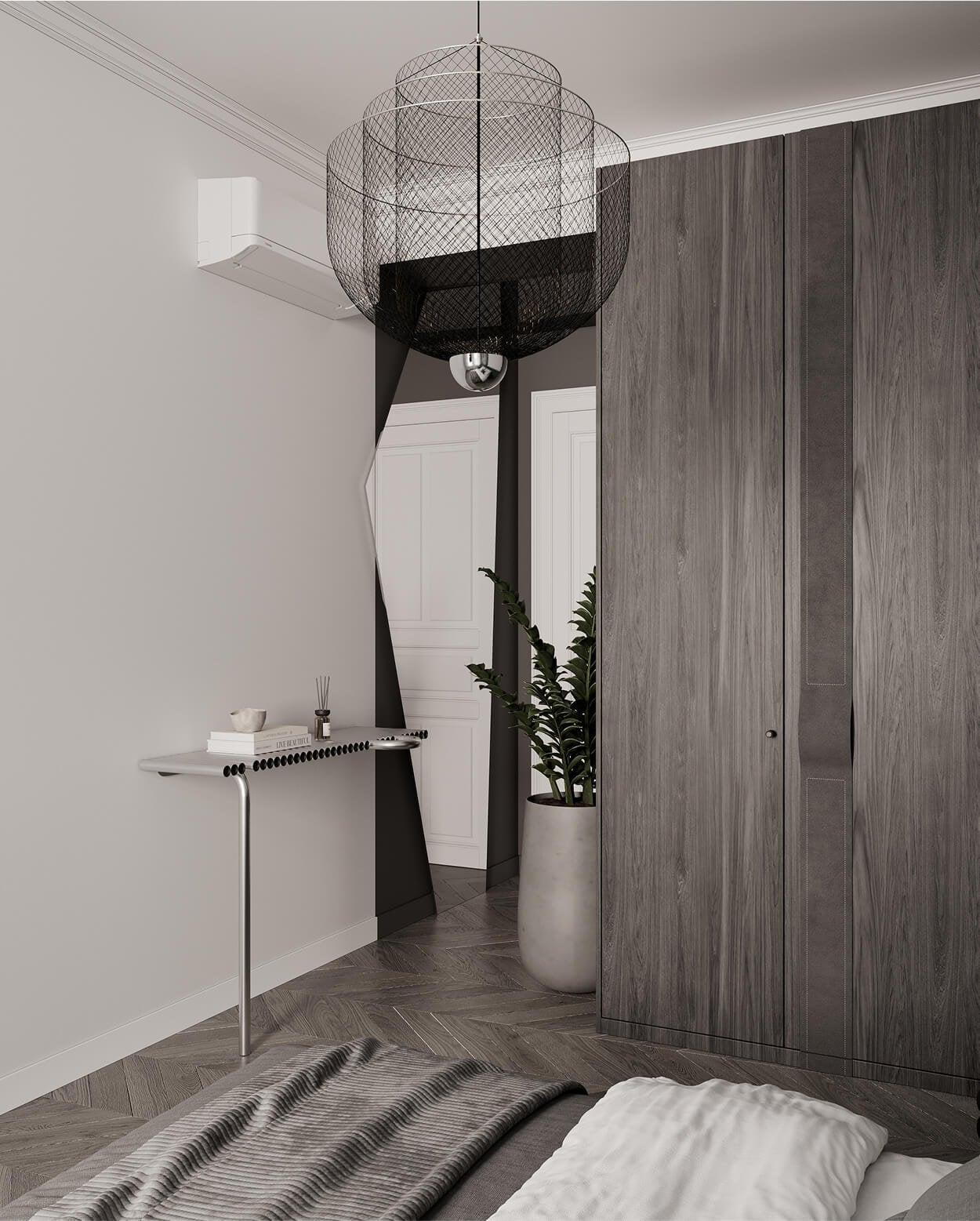 Elektroinstalace je osazena designovými vypínači a zásuvkami JUNG LS 990. V bytě jsou instalována zapuštěná bodová svítidla McLED TORO a samozřejmostí je také nástěnná klimatizační jednotka pro zajištění komfortu v letních měsících.