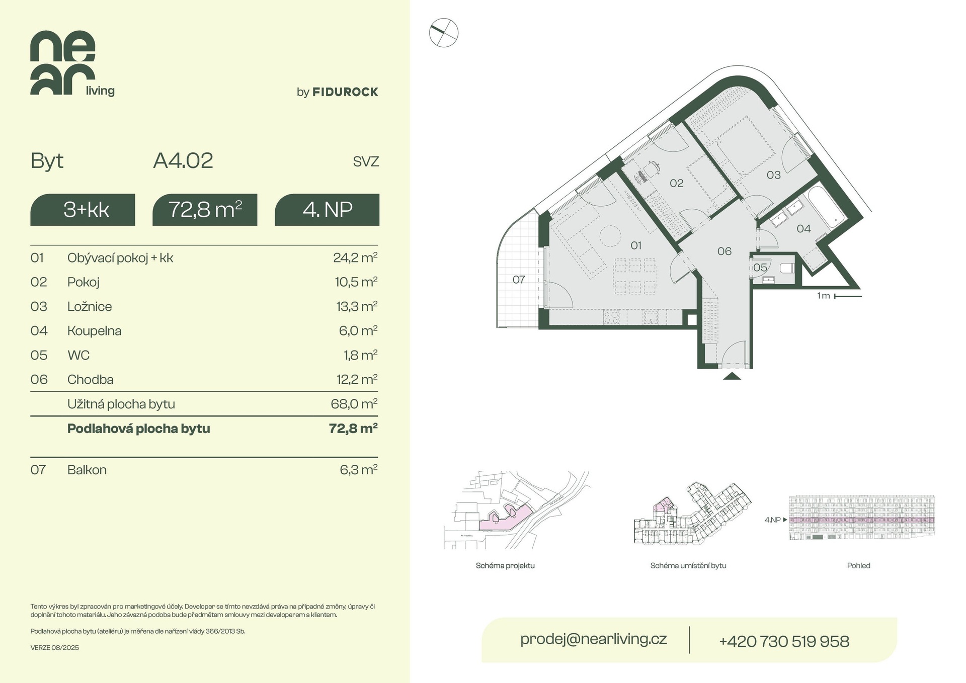 Nabízíme k prodeji byt 3+kk o podlahové ploše 72,8 m² s balkonem 6,3 m² v developerském projektu NEAR living v Praze 8, vznikajícím na pomezí Palmovky a Karlína.
