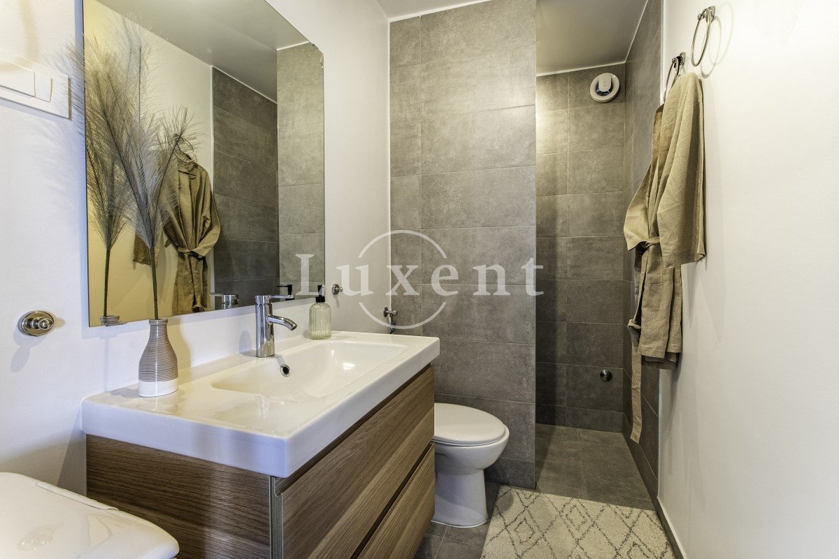 K apartmánu náleží také lodžie, místnost pro cvičení a zajištěné parkovací místo na pozemku. Díky modernímu designu, promyšlenému rozložení a blízkosti moře představuje tato nemovitost výbornou příležitost pro pohodlné bydlení i investici do turistického pronájmu.