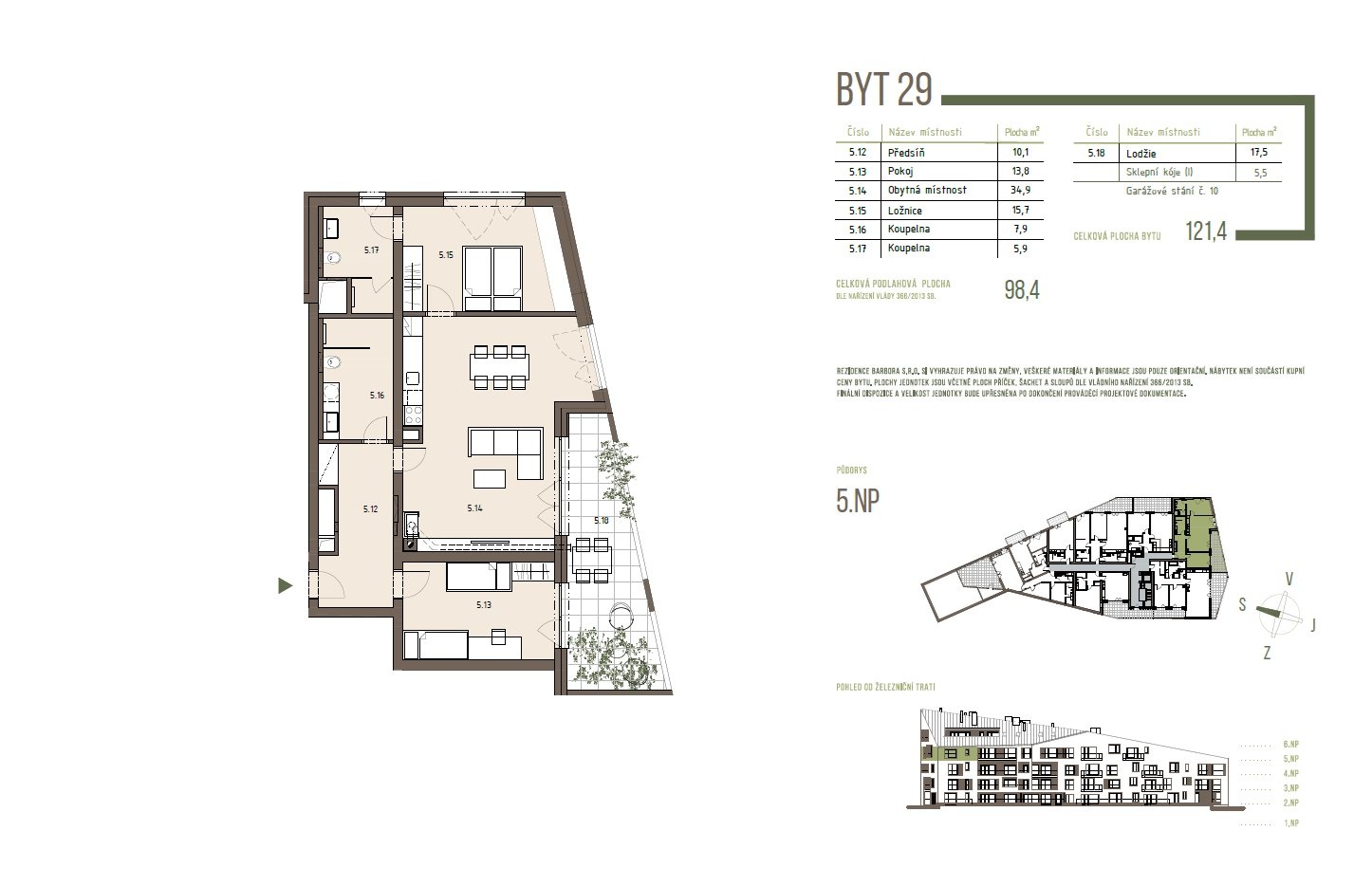 | SB-29 | 3+kk | 4. patro | 89 m2 | 98 m2 | Ne / Ne / 18 m2 | Ne | 13 965 000 Kč | Detail |