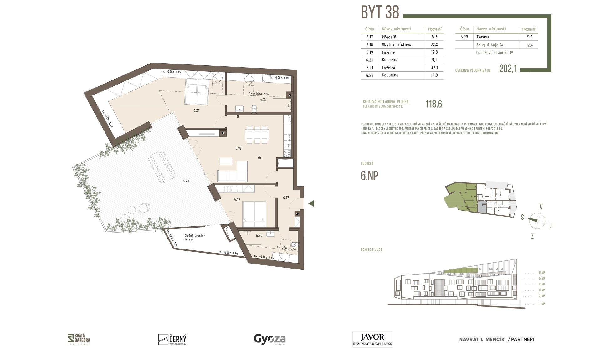 | SB-38 | 3+kk | 5. patro | 112 m2 | 119 m2 | 71 m2 / Ne / Ne | Ne | 18 869 000 Kč | Detail |