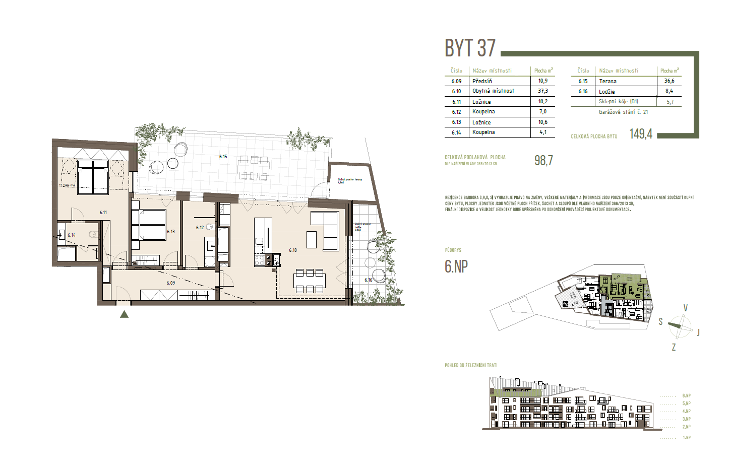 | SB-37 | 3+kk | 5. patro | 96 m2 | 99 m2 | 37 m2 / Ne / 8 m2 | Ne | 16 425 100 Kč | Detail |