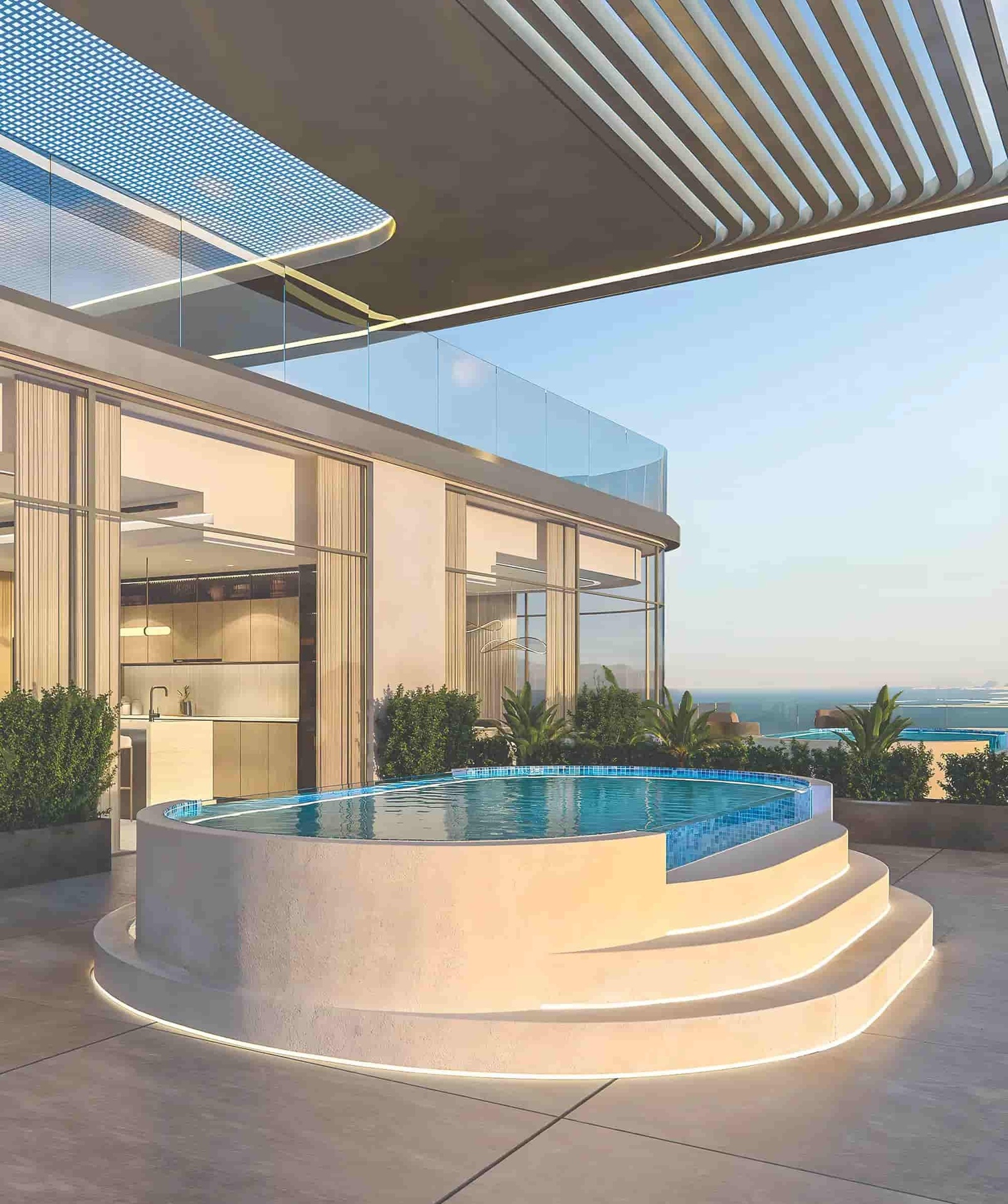 Arka Enclave Residences je koncipován jako harmonické propojení resortního životního stylu a městské elegance. Obyvatelé mají k dispozici přímý přístup na pláž, klidné zahrady a relaxační zóny, které vytvářejí prostor pro odpočinek a zpomalení. Součástí projektu je moderní fitness centrum a pečlivě navržené společné prostory podporující aktivní a vyvážený životní styl. Přirozeným vrcholem rezidence je střešní bazén s lounge zónou, odkud se otevírají nerušené panoramatické výhledy na okolní ostrovy a pobřeží – ideální místo pro večerní relaxaci při západu slunce. Vybrané rezidence v projektu disponují také soukromými bazény, což podtrhuje exkluzivitu celého konceptu.