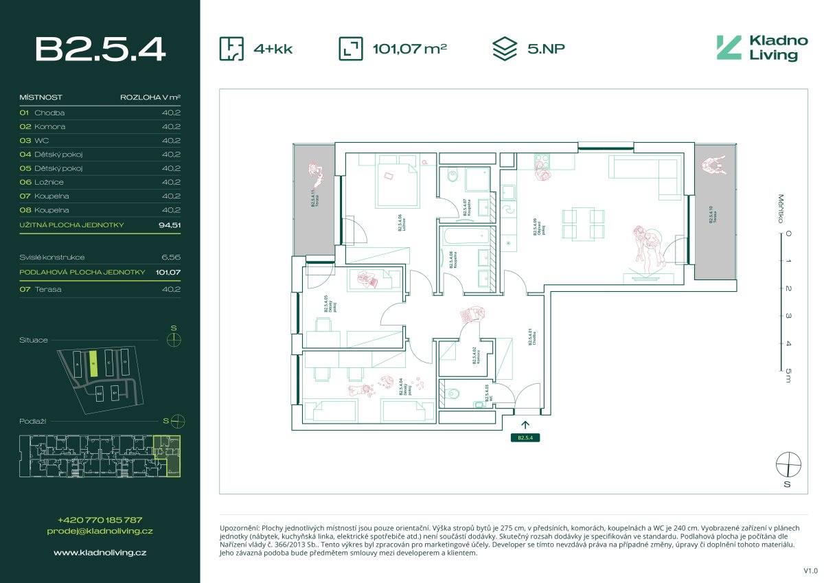Nabízíme ke koupi moderní byt 4+kk o podlahové ploše 101 m² se dvěma terasami, celkem o výměře 40 m² v rezidenčním projektu Kladno Living, který vzniká v jedné z nejatraktivnějších lokalit města Kladno – Kročehlavy. Tento nový developerský projekt představuje jedinečnou příležitost pro ty, kteří hledají nové byty v Kladně nebo investici do nemovitosti s vysokým potenciálem zhodnocení.