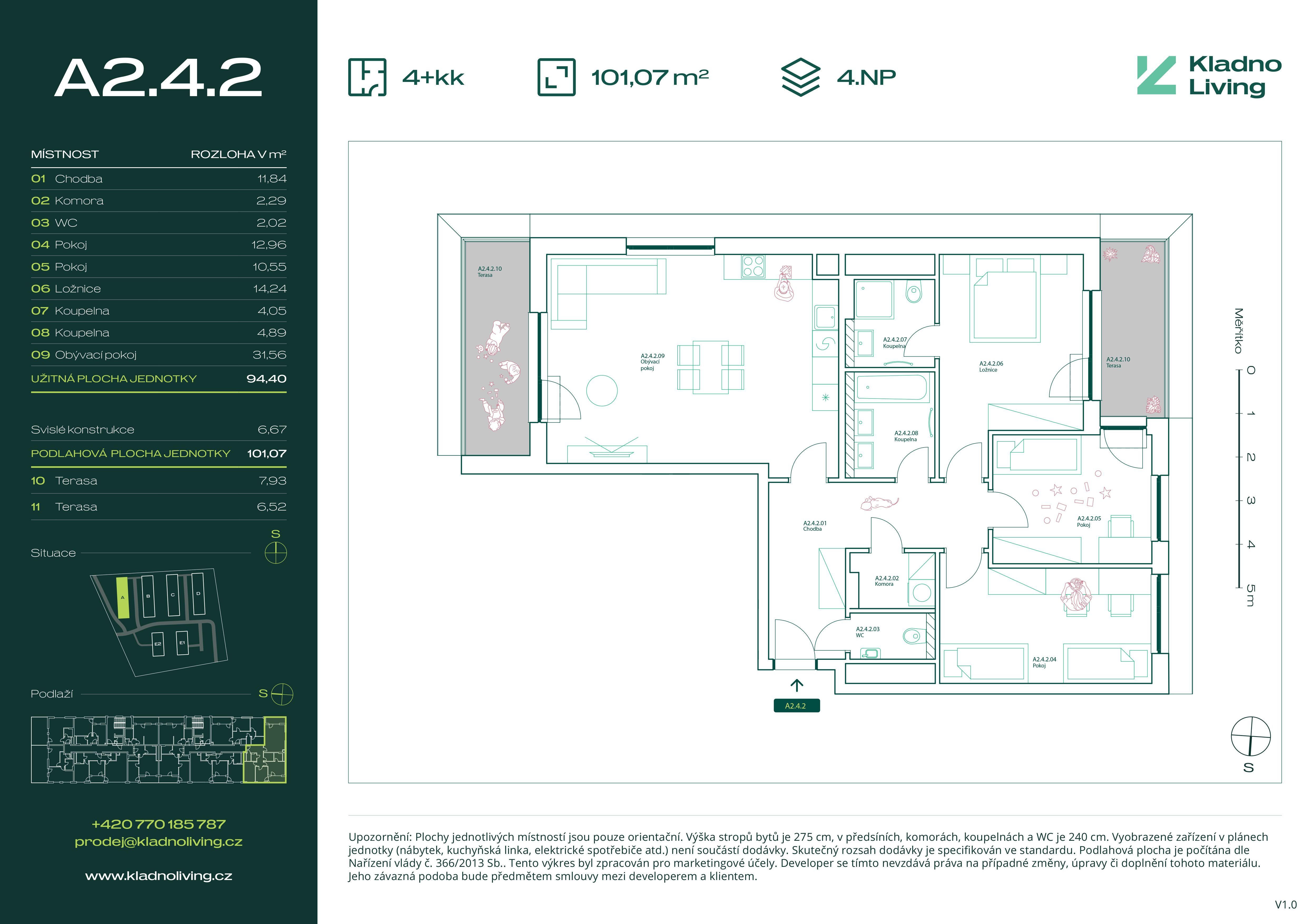 | KL-A217 | 2+kk | přízemí | 51 m2 | 54 m2 | 21 m2 / Ne / Ne | Ne | Rezervováno | Detail |