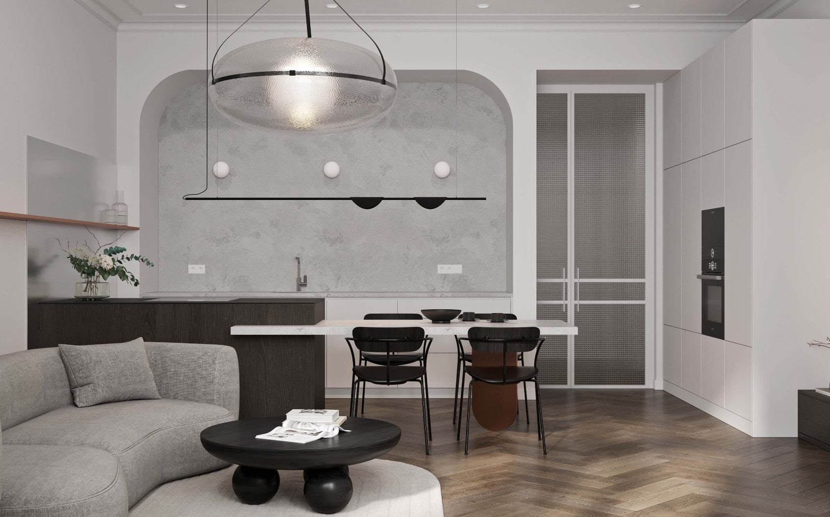 Bytová jednotka o dispozici 4+kk disponuje vlastní terasou a sklepní kóji. Interiér byl navržen předními architekty ze studia SMLXL s mimořádným důrazem na vysokou kvalitu materiálů, technickou preciznost a nadčasovou estetiku. Prostory vynikají promyšleným dispozičním řešením a prémiovými moderními standardy.