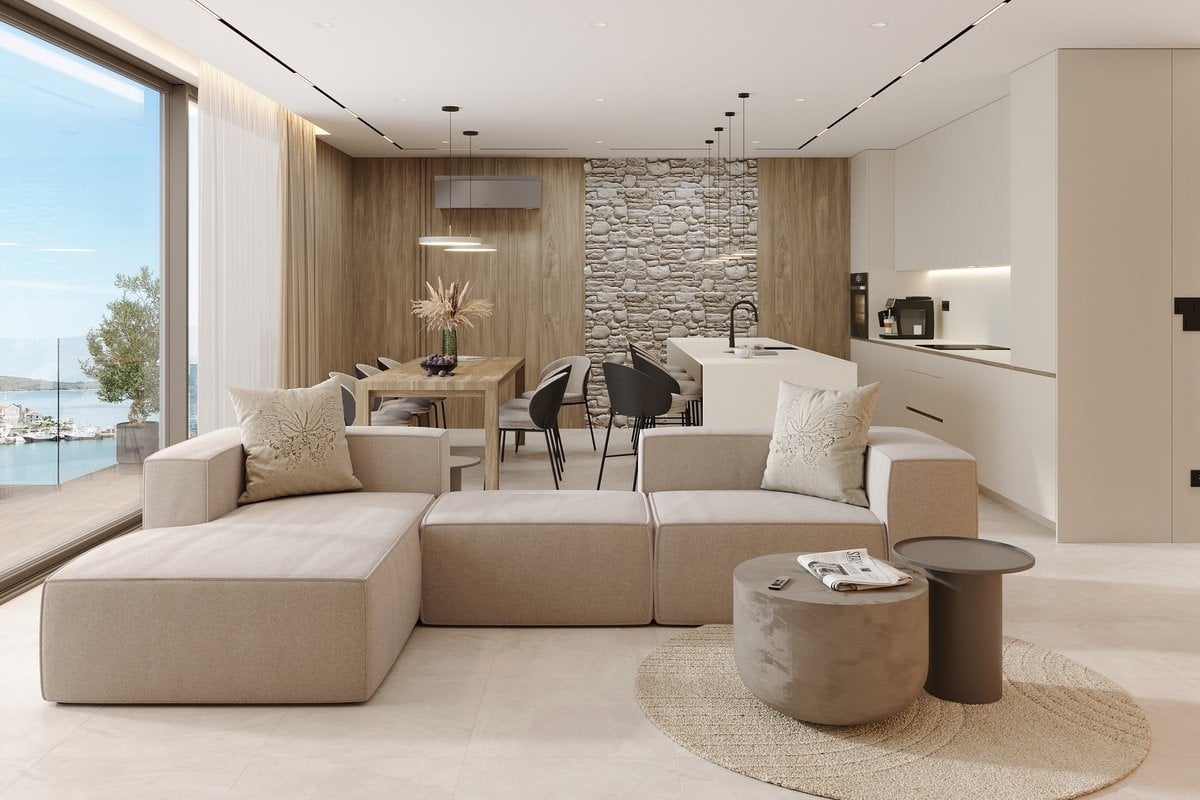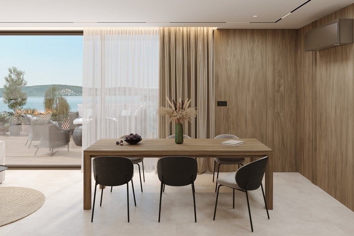 Nabízíme k prodeji výjimečný penthouse v moderní rezidenci se třemi apartmány ve městě Rogoznica, jen pár minut chůze od centra i moře. Nemovitost se vyznačuje prémiovou kvalitou provedení, špičkovými materiály a dechberoucími panoramatickými výhledy na Jaderské moře.