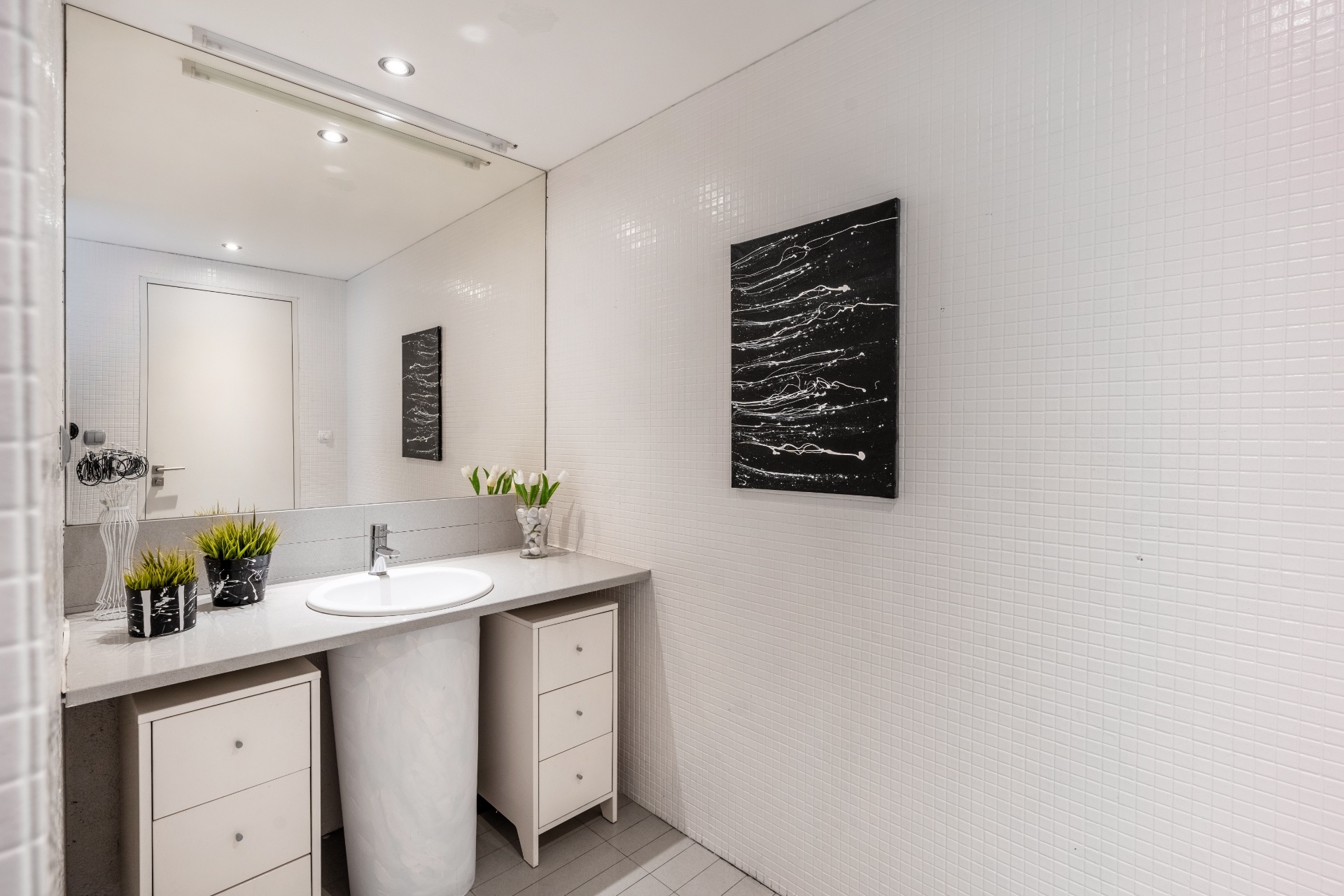 Po obou stranách obytné místnosti jsou vchody do soukromých ložnicových částí. Každá z nich má předsíň, dvě ložnice (pokoje o velikosti 15,6 m², 17,8 m², 17,95 m² a 15,64 m²) a koupelny (8 m²), druhá koupelna je rozdělena, část slouží jako technická místnost s pračkou a sušičkou (4,87 a 4,2 m²).