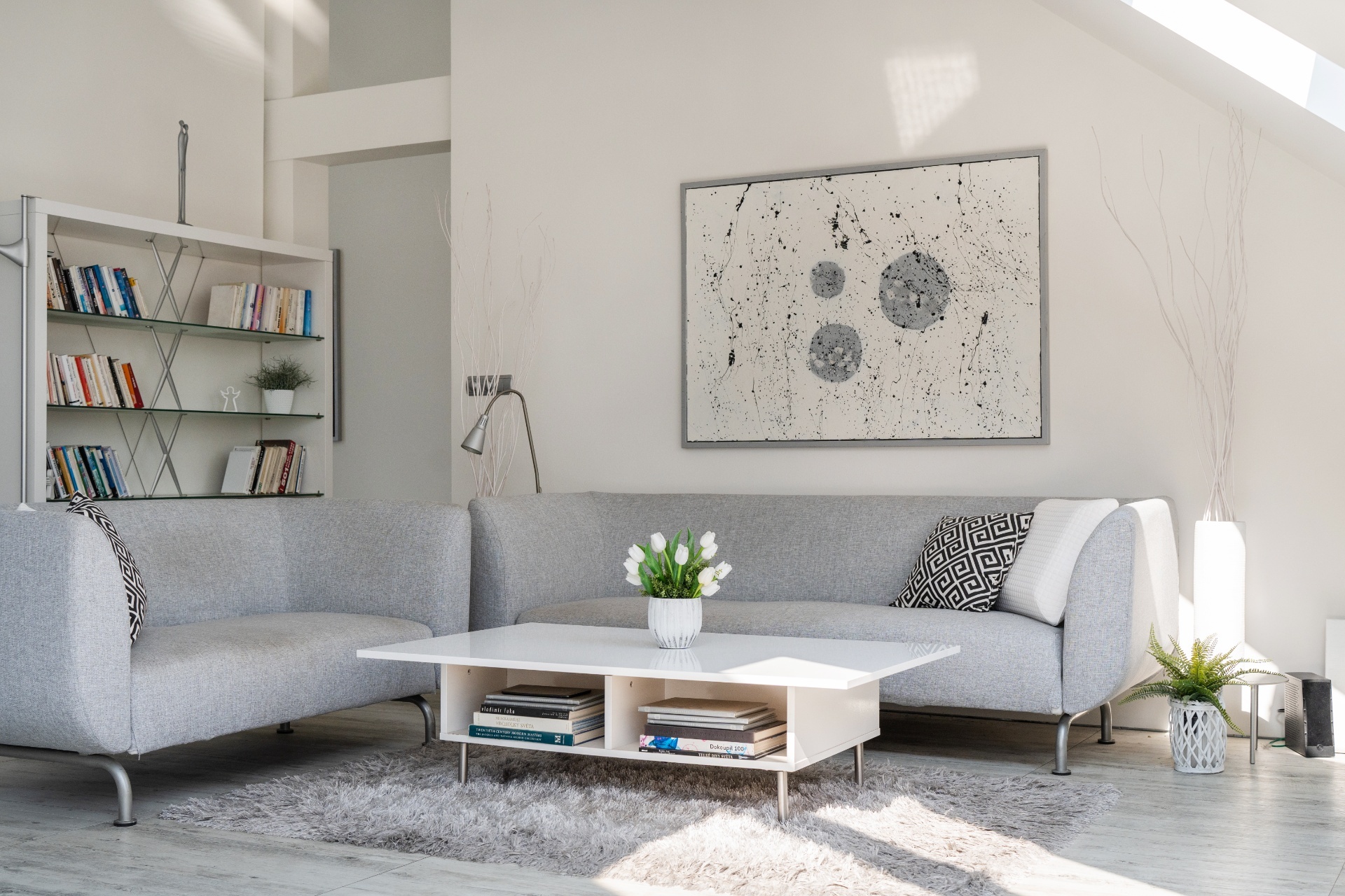 Kolaudace bytu proběhla v roce 2002. Dveře na terasy jsou hliníkové, velkoplošná panoramatická okna v ocelových rámech prosvětlují obývací pokoj s výškou stropu 7 metrů. Podlahy jsou vinylové. Topný systém je napojen na vlastní plynový kotel.