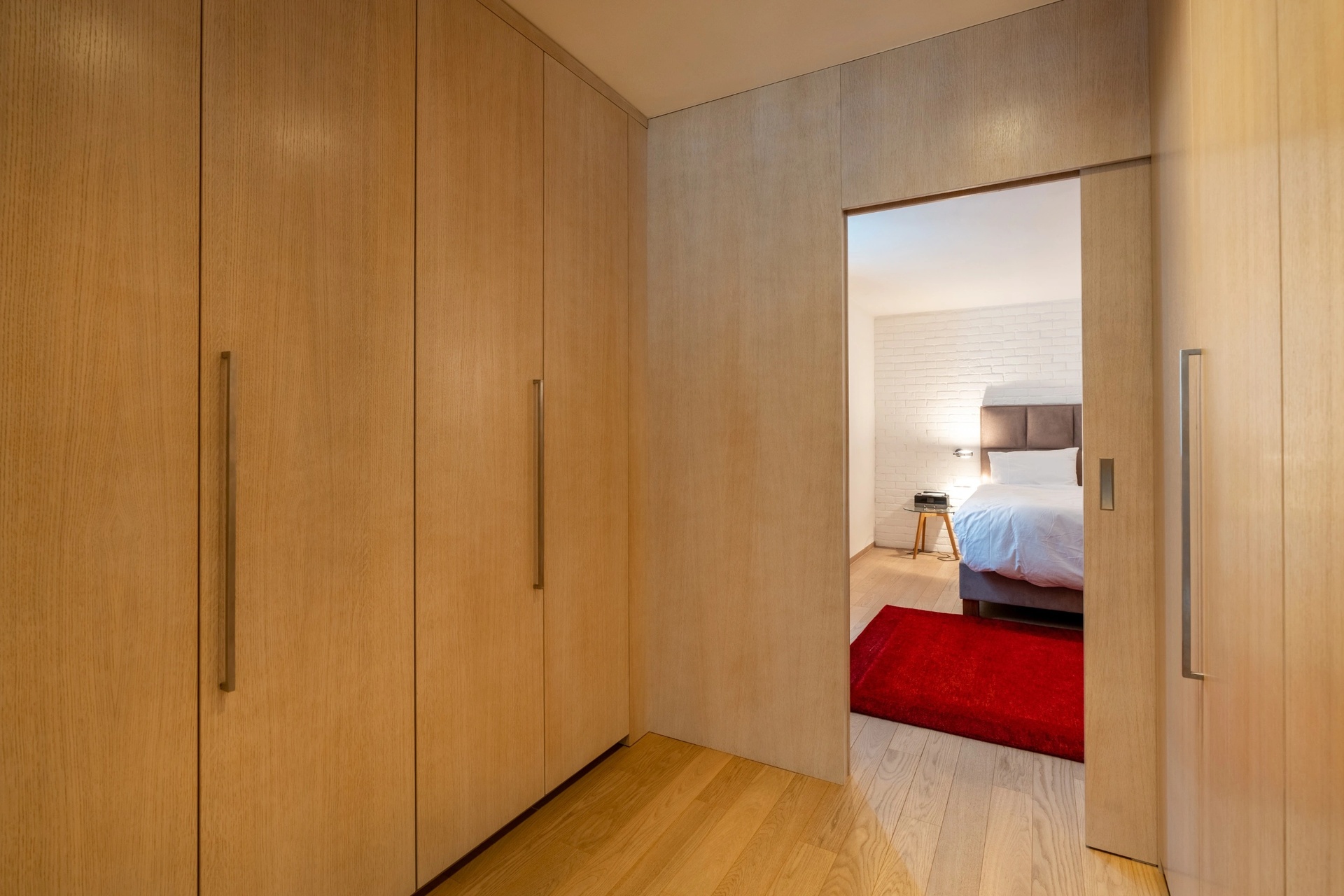 Byt o celkové výměře 507 m² je přístupný zastřešeným koridorem vedoucím z nádvoří. Z něj se vstupuje do chodby, odtud pak do dvou samostatných menších oddělených apartmánů (36 m² a 34 m²), vhodných na pronájem či na podnikání. Každý apartmán je vybaven vlastní kuchyňkou s jídelním koutem a sociálním zázemím. V této části je také vchod do hlavního bytu. V přízemí okolo hlavní haly (28 m²) se schodištěm jsou umístěné šatny, technická místnost a kotelna, sociální zázemí, úklidová místnost a sklady. Ve druhém nadzemním patře se nachází hlavní obytný prostor (62 m²) prosvětlený skleněnou stěnou a propojený s terasou (47 m²), jídelnou a kuchyní; pracovna (11 m²), další menší terasa (12 m²) a koupelna s toaletou. Schodištěm nebo výtahem se dostaneme do třetího nadzemního patra se dvěma ložnicemi (14 m² a 18 m²), dvěma terasami (3 m² a 7 m²), šatnou a velkoryse řešenou koupelnou s vanou, sprchovým koutem a saunou (17 m²). Na posledním patře je umístěna hlavní ložnice (25 m²) s pracovnou a knihovnou (25 m²), šatnou, koupelnou a terasou. Z koupelny (8 m²) se vchází na terasu (7 m²), ze které je výhled na charakteristickou barokní střechu kostela Sv. Mikuláše na Malostranském náměstí.